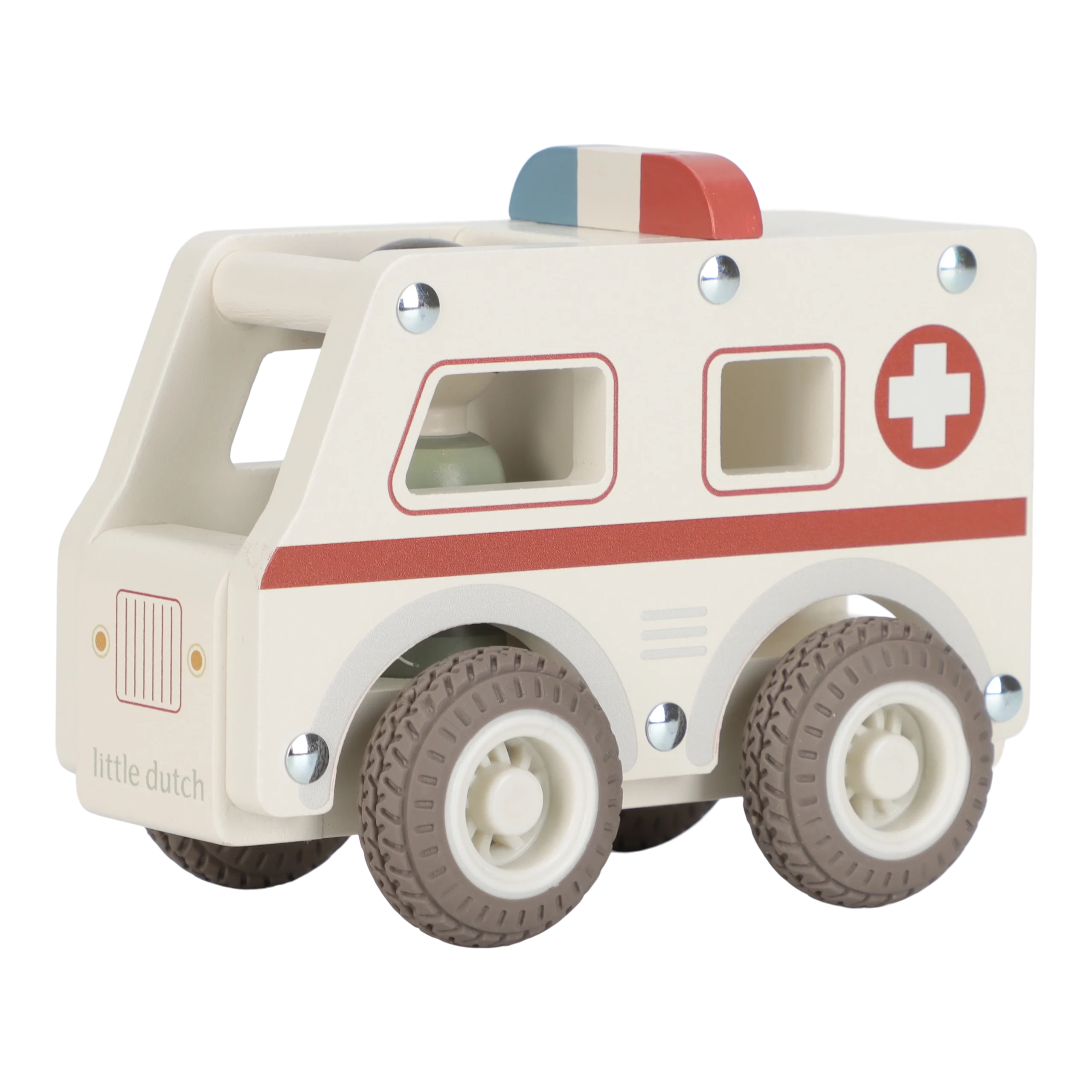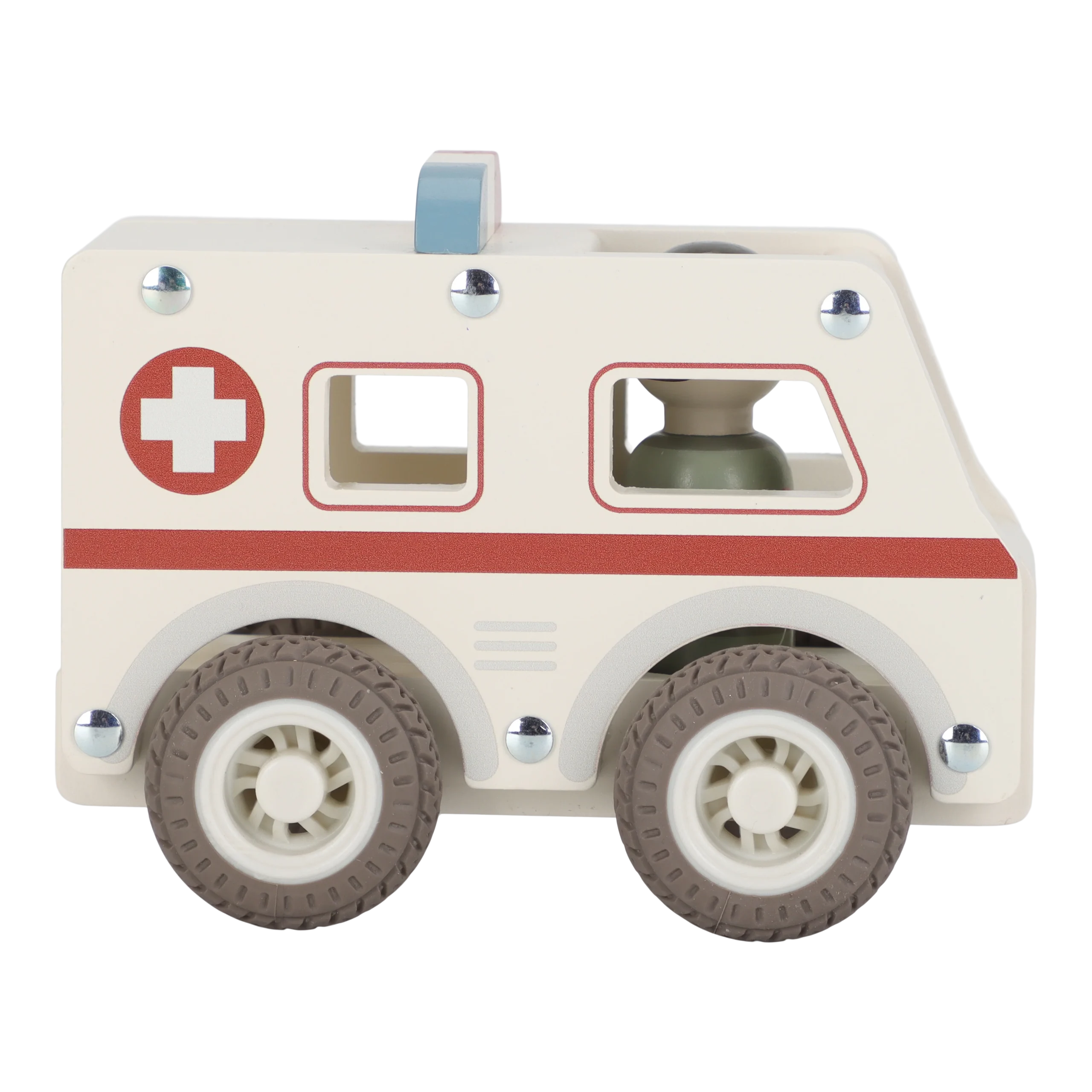 Sirène en marche, l’ambulance arrive ! Cette ambulance en bois robuste est parfaite pour inventer des histoires de sauvetage et enrichir les jeux de rôle. Grâce à ses roues en caoutchouc, elle roule facilement et en douceur, idéale pour les courses vers l’hôpital. CARACTÉRISTIQUES Dès 18 mois 100 % Bois