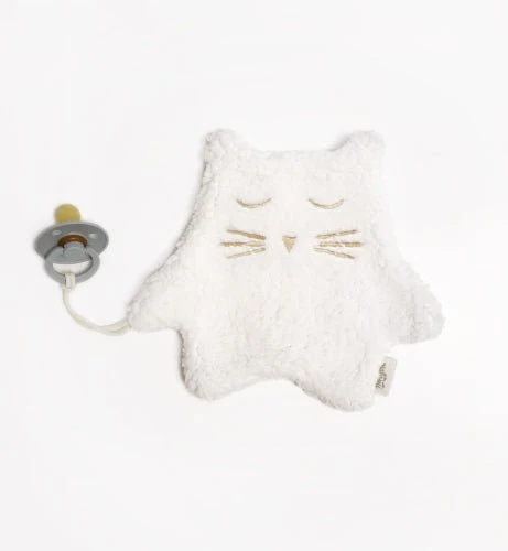 En forme de Chaton, le Doudou Attache Tétine Chaton de Malomi Kids accompagnera votre enfant partout. En plus d’éviter de le perdre, il sera doux à câliner et pourra faire office de Doudou.