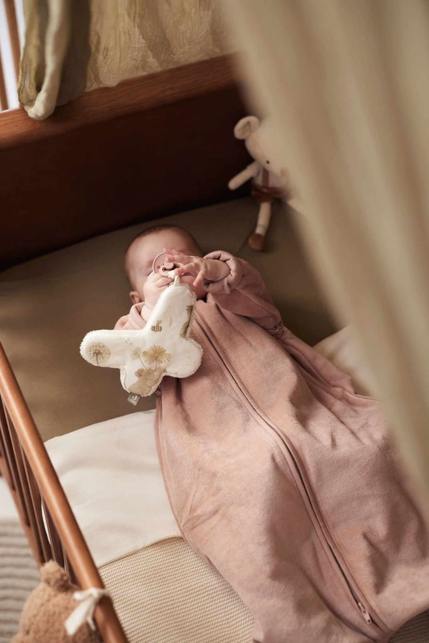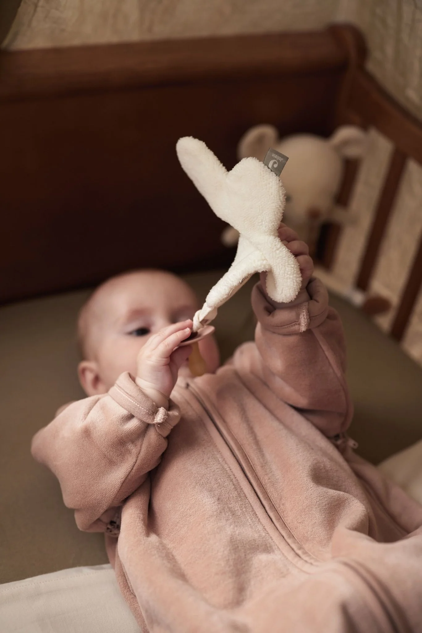 Cet attache tétine de la marque Jollein, ultra-douce est un petit doudou qui attend d’être tripoté et câliné.