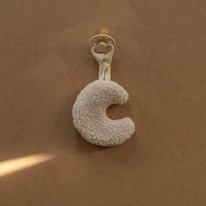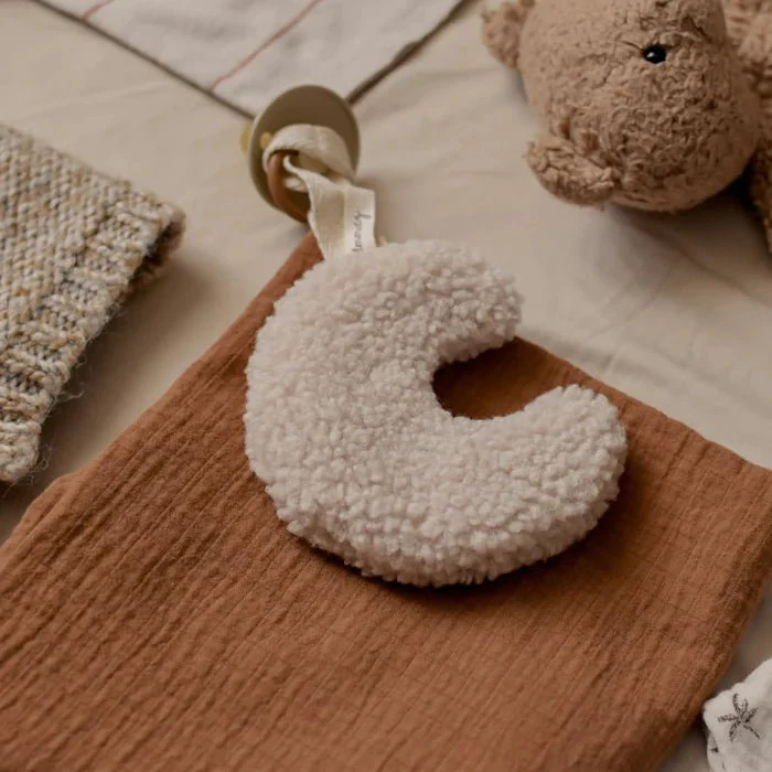 Cette Attache Tétine Lune en Sherpa est à accrocher sur la tétine de votre bébé.