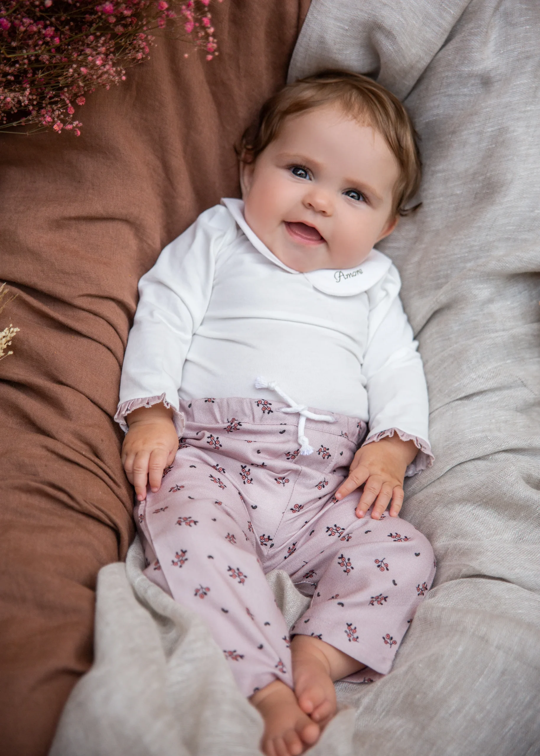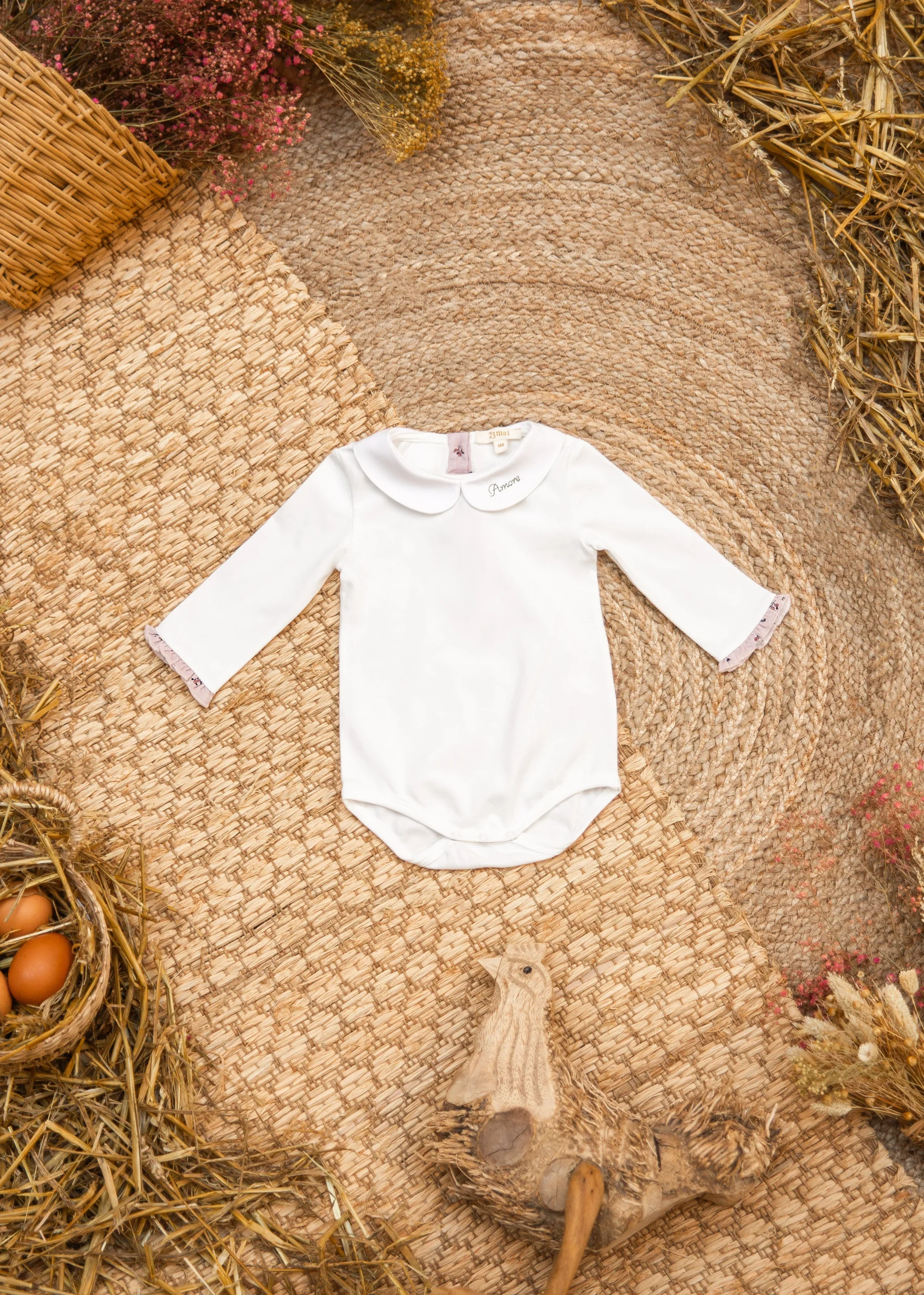 Body en jersey de coton avec fermeture par pressions en bas et trois boutons dans le dos.Merci de noter qu’à partir du 1er Mars, nos vêtements enfant ne pourront plus être brodés ou personnalisés.