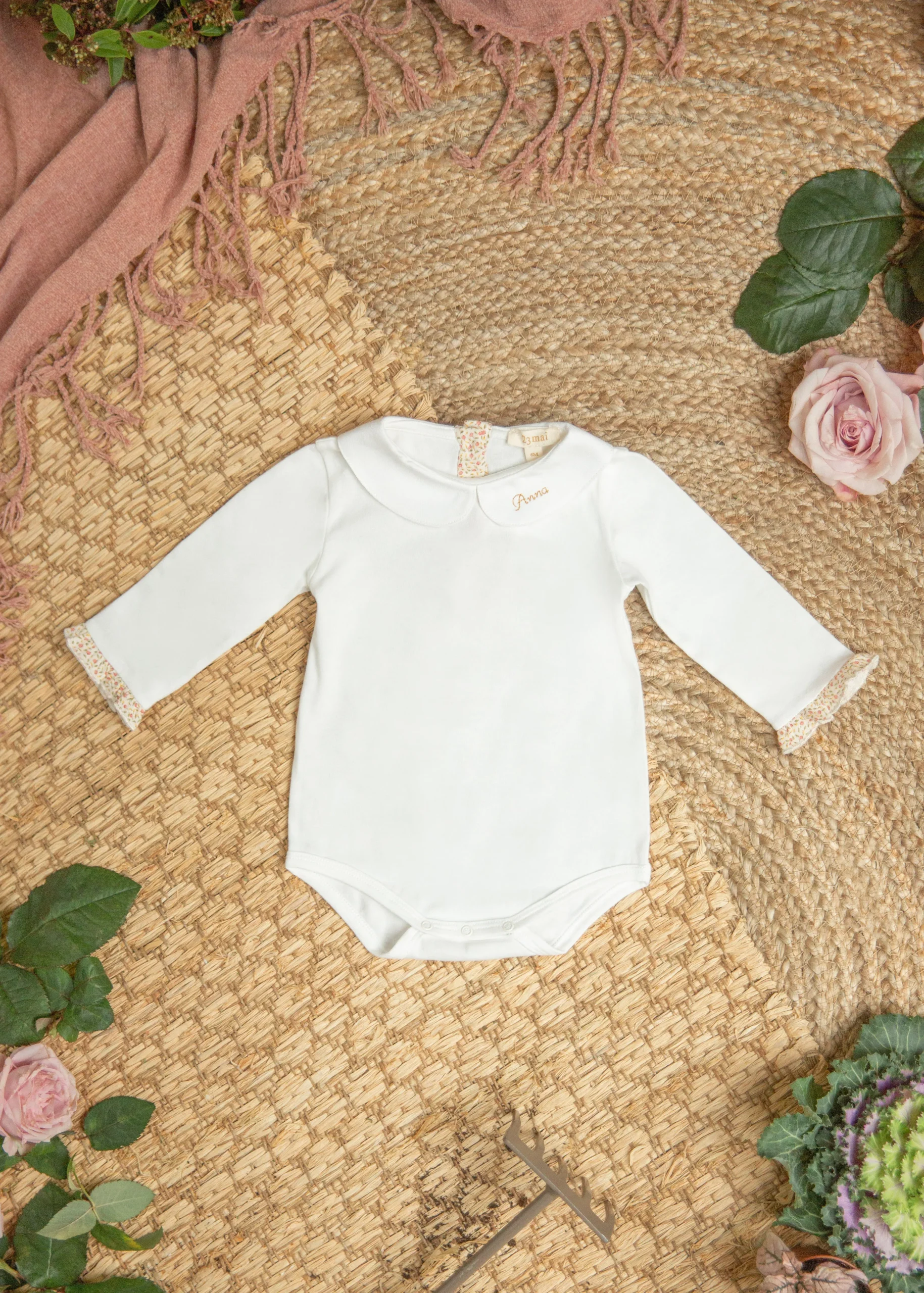 Body en jersey de coton avec fermeture par pressions en bas et trois boutons dans le dos.Merci de noter qu’à partir du 1er Mars, nos vêtements enfant ne pourront plus être brodés ou personnalisés.