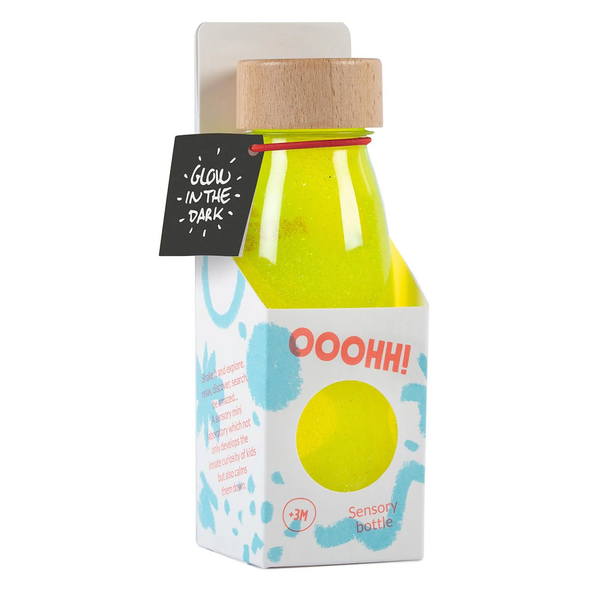 Avec des teintes inspirées directement de la nature, cette bouteille initie votre enfant à la couleur jaune fluo. Il sera captivé par les jeux de lumière et les mouvements internes. En interagissant avec cette bouteille, votre bébé sera absorbé, trouvant ainsi un moment de paix et de tranquillité.