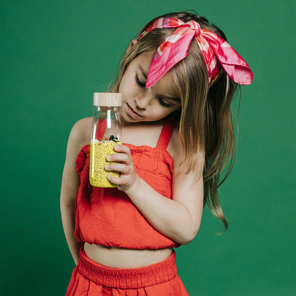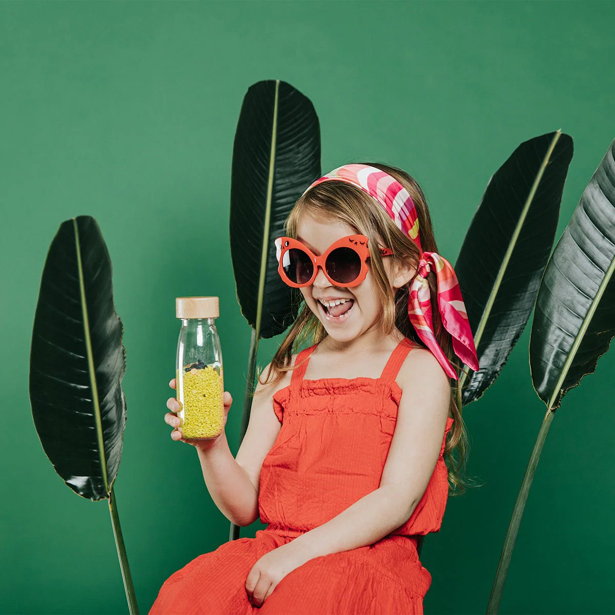 Dans la Bouteille Sensorielle Sonore Toucan de Petit Boum la jungle regorge de savoureux fruits tropicaux. Voulez-vous l’essayer ? Mais attention, si vous tendez l’oreille, vous pourrez entendre le toucan qui protège ses œufs des intrus…
