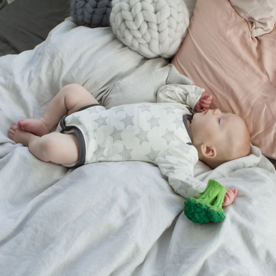 Il s’appelle Brucy le Brocoli de la marque Oli & Carol fabriqué en latex d’hévéa 100% naturel, peut être utilisé comme jouet de dentition, jouet de bain ou comme objet décoratif.