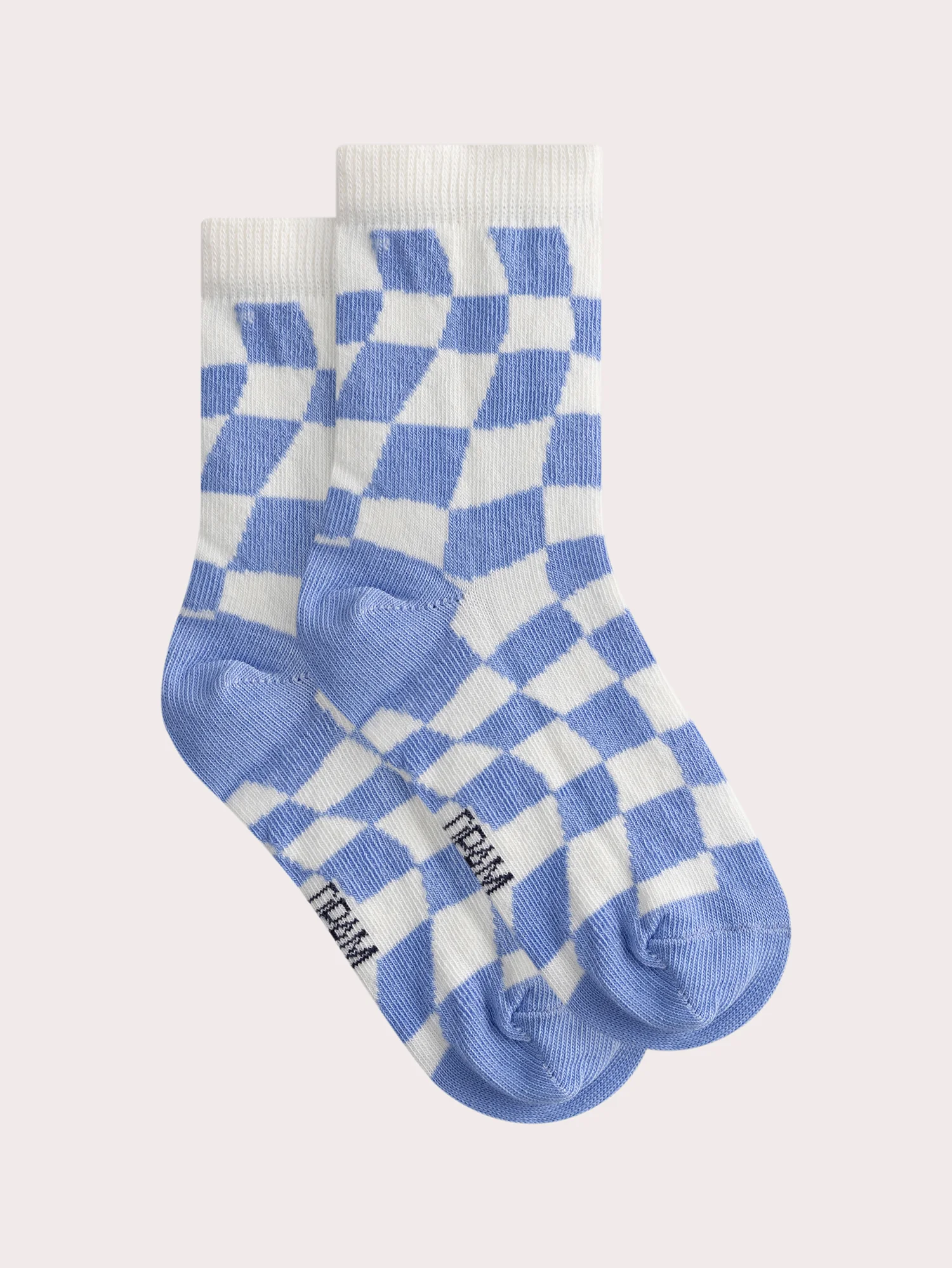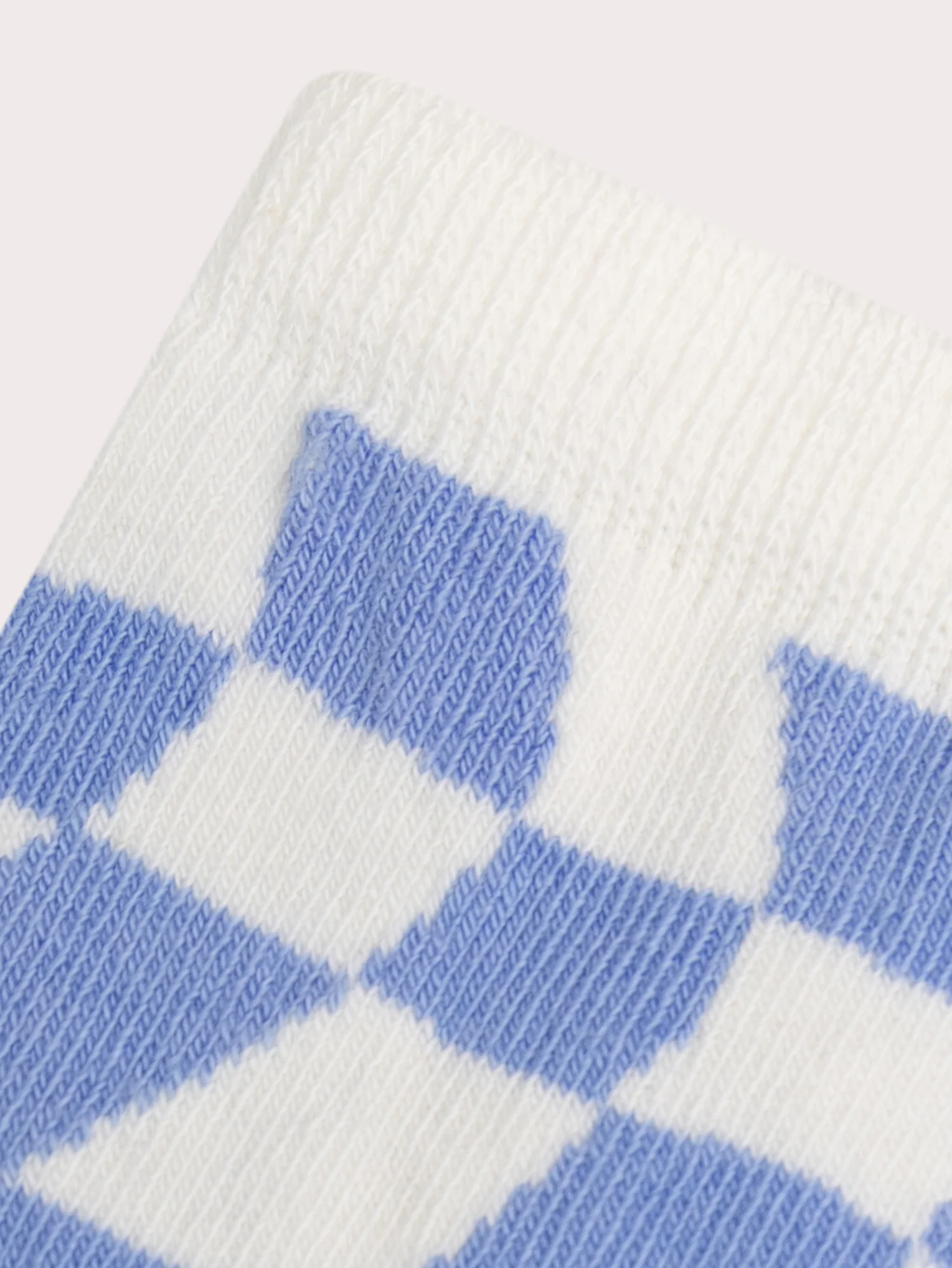 Chaussettes bleues et écrues à motif damier