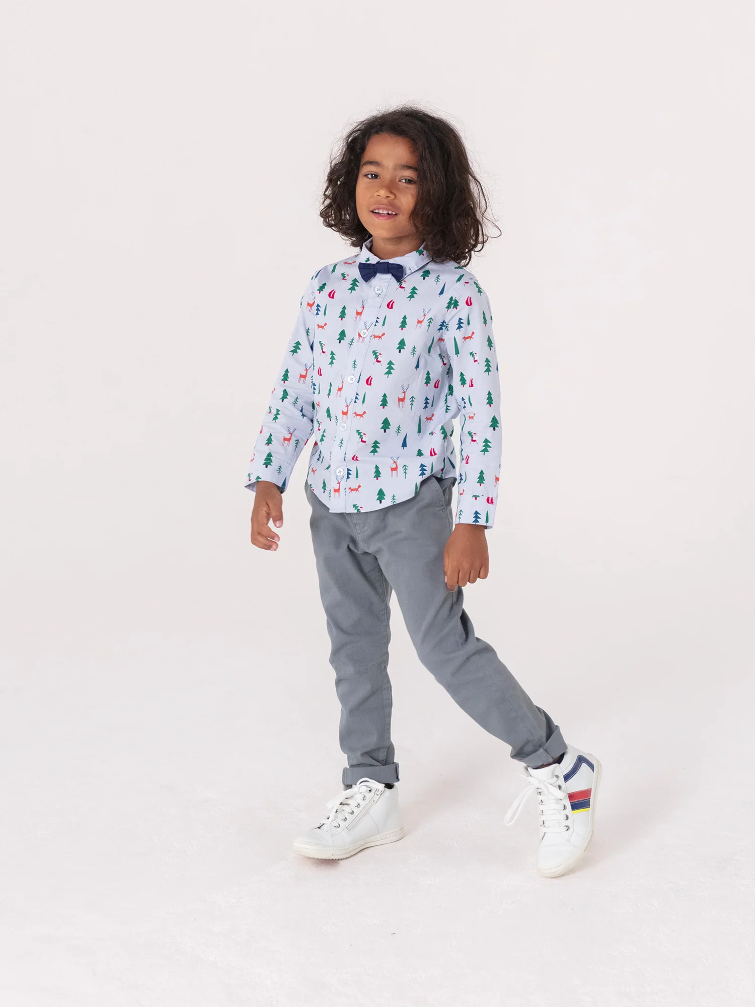 Chemise manches longues bleue imprimée et nœud papillon