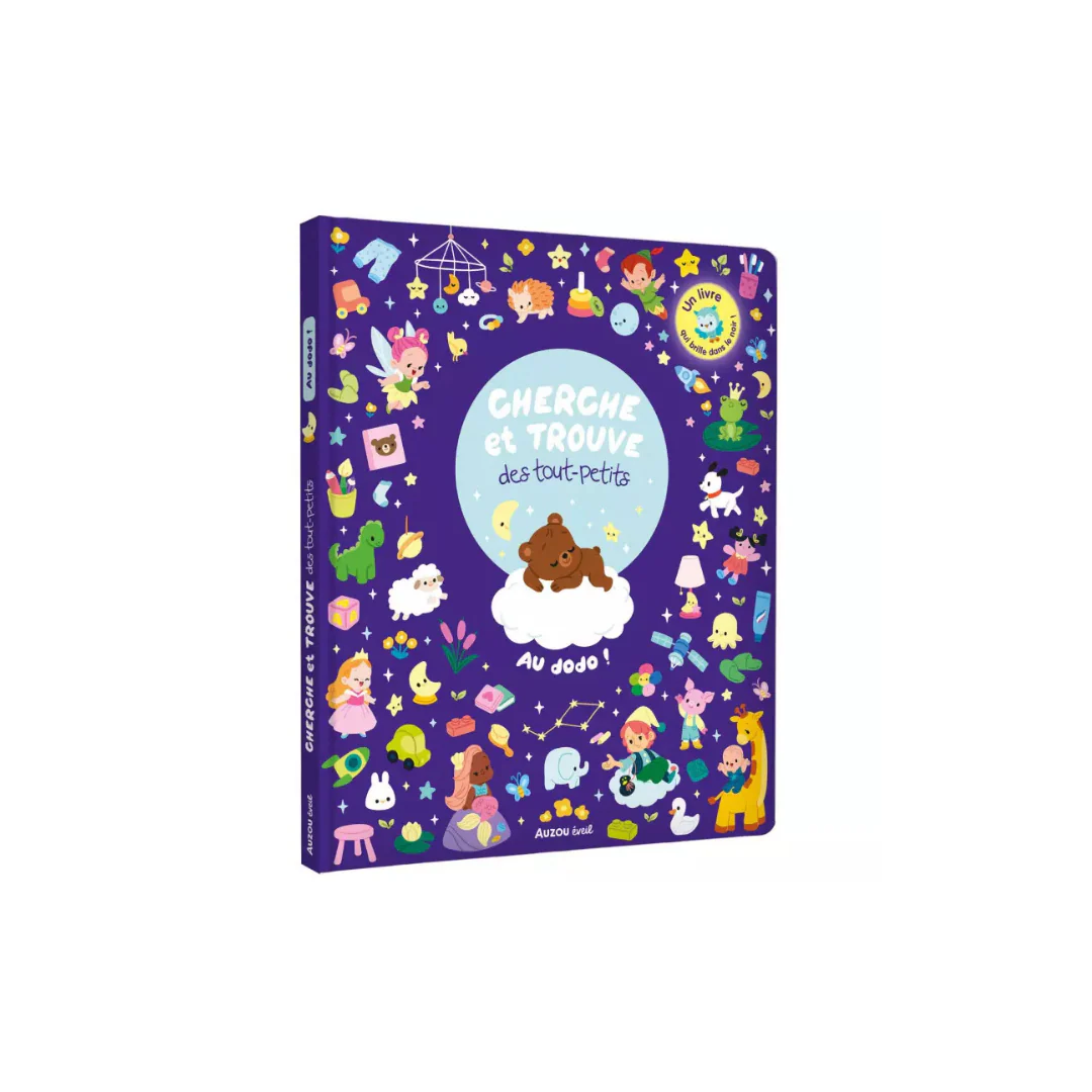 À travers 9 planches foisonnantes de détails, Ils observent attentivement et retrouvent 7 éléments (+ la mascotte) bien cachés sur chaque planche : des animaux endormis, des étoiles filantes, Peter Pan ou le marchand de sable apparaissent au fil des pages. Du vernis phosphorescent permet de retrouver des éléments cachés dans le noir !