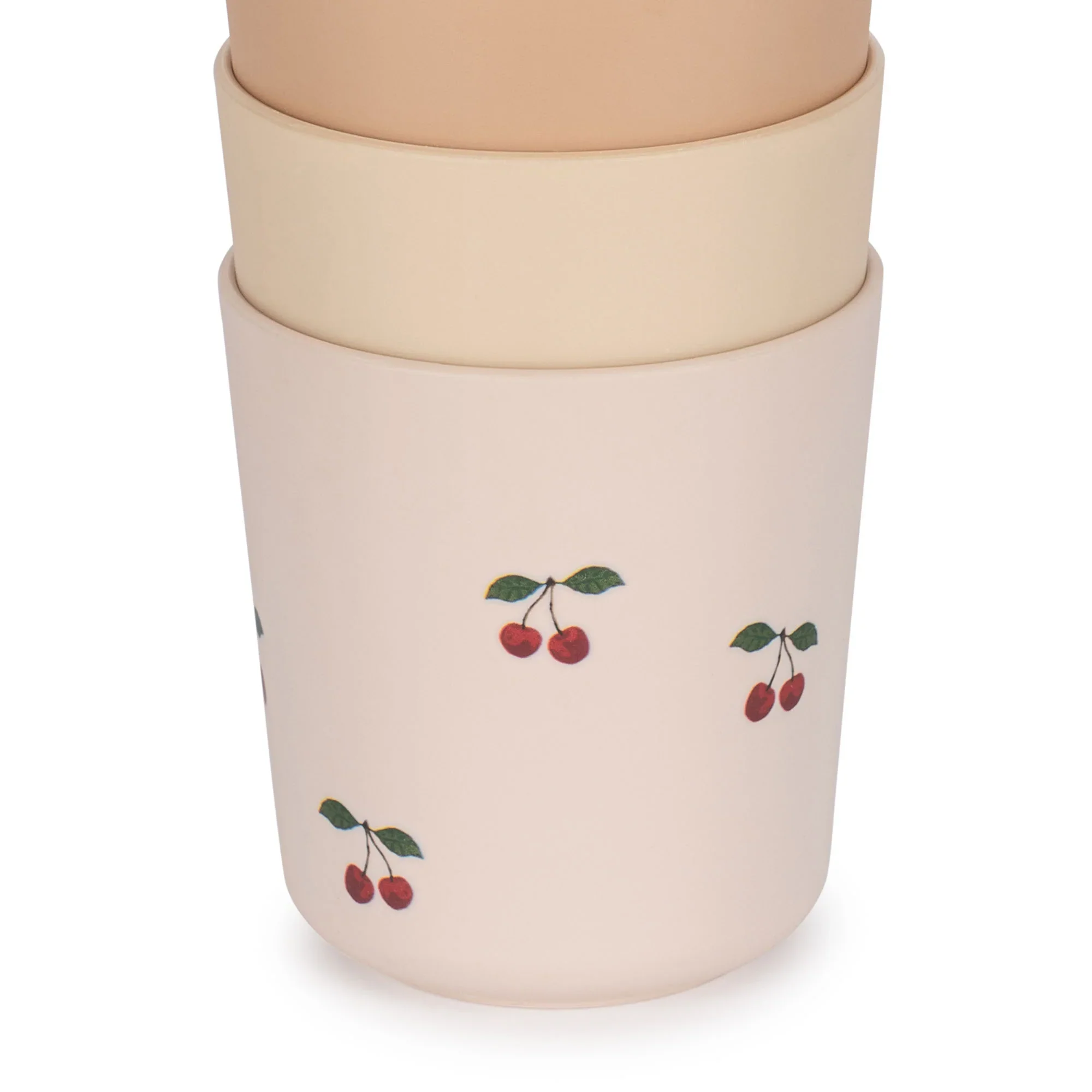 un bel ensemble composé de cinq tasses. Les tasses ont un design simple, avec de belles couleurs et un fruit en vedette. Leur taille permet aux enfants de les tenir et de boire facilement.