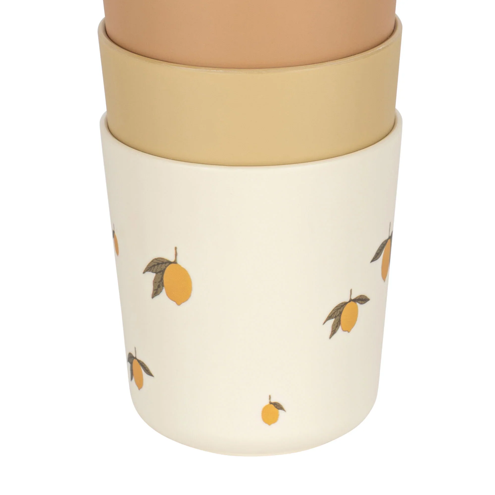 un bel ensemble composé de cinq tasses. Les tasses ont un design simple, avec de belles couleurs et un fruit en vedette. Leur taille permet aux enfants de les tenir et de boire facilement.