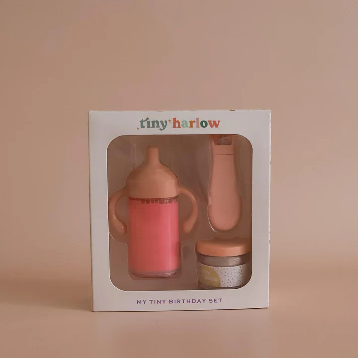 Coffret Anniversaire pour poupée – Biberon Lait Fraise et Petit pot magique Gâteau
