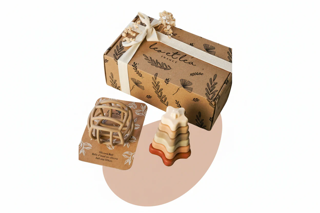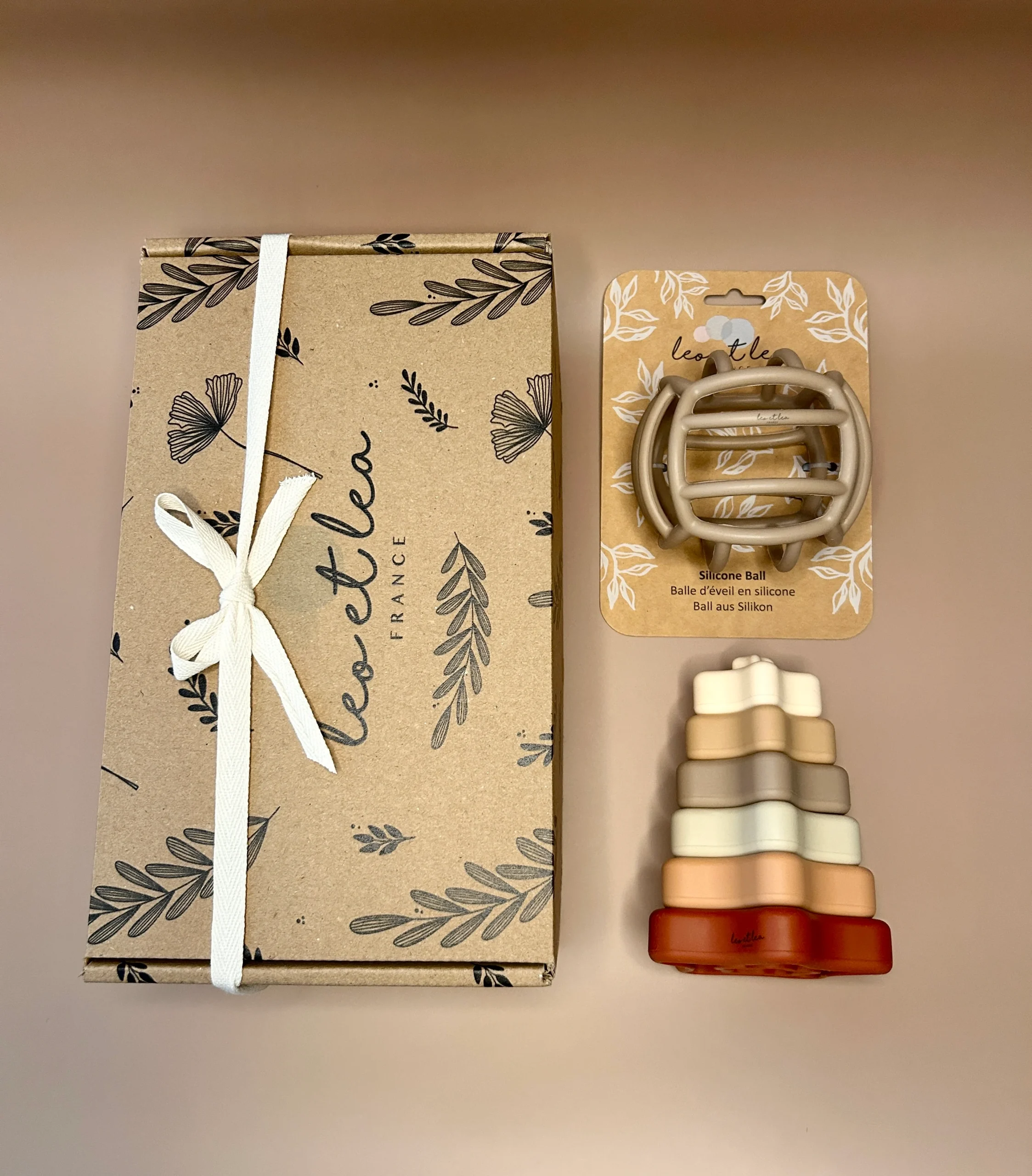 Préemballé dans une boîte cadeau en carton kraft, le coffret cadeau leo et lea plaira aux familles qui s’adaptent à la vie avec un adorable petit.