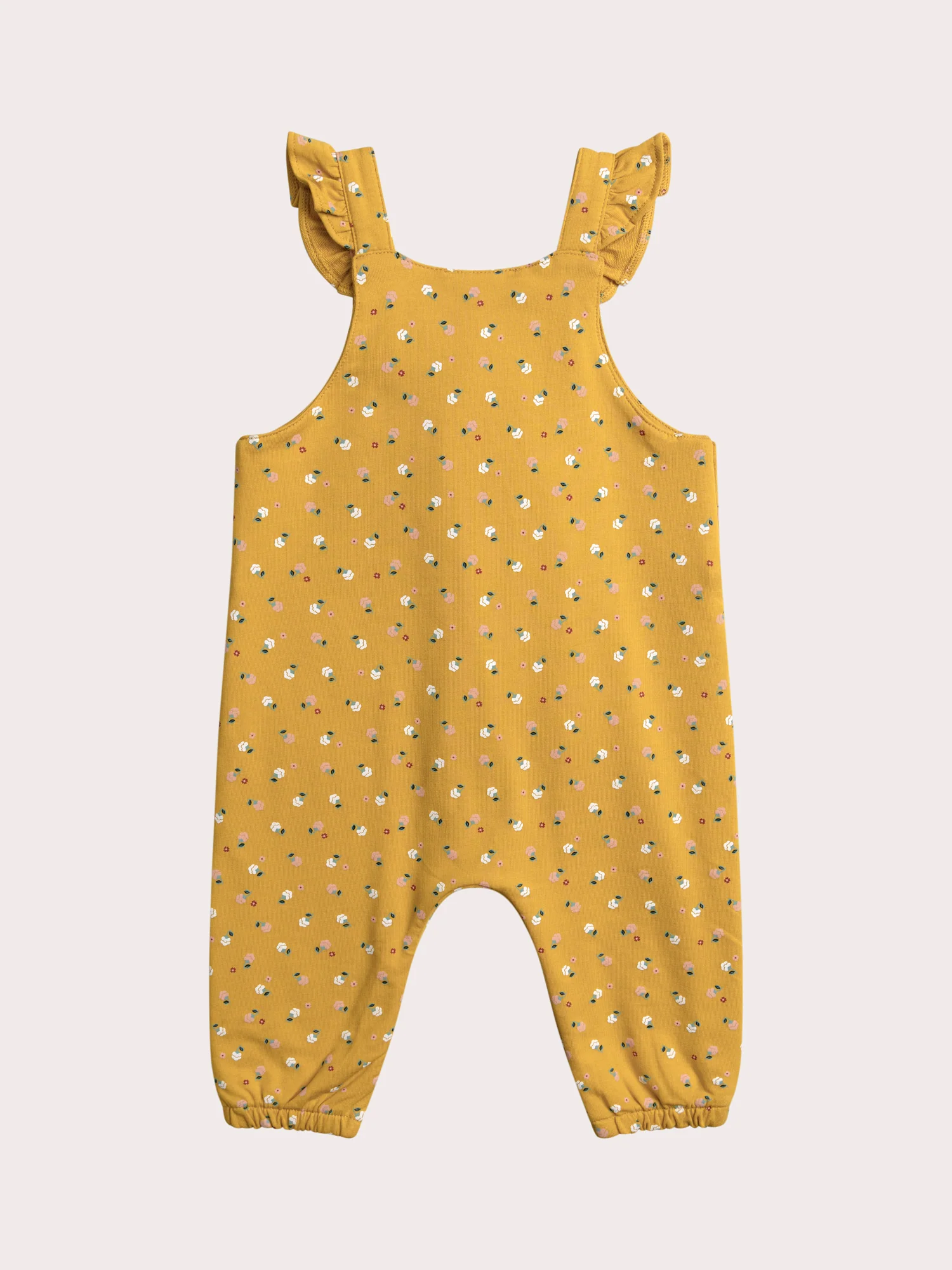Cette combinaison à fleurs est idéale pour les bébés filles, parfaite pour les journées fraîches. Confectionnée en molleton gratté, elle offre douceur et chaleur avec un confort optimal. Les volants sur les bretelles et l’imprimé fleuri apportent une touche délicate et féminine à la tenue.
