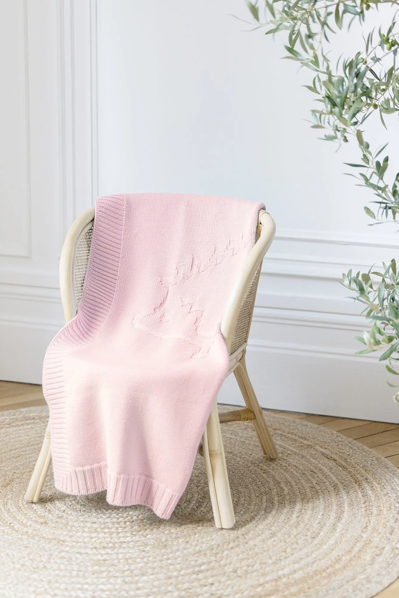 Souple et doux, le plaid Hérisson en laine rose pâle enveloppe les bébés de chaleur et de confort dès leur premier jour.