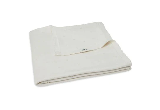 Cette couverture du thème Pointelle est en coton biologique et présente un joli crochet en forme de pointe