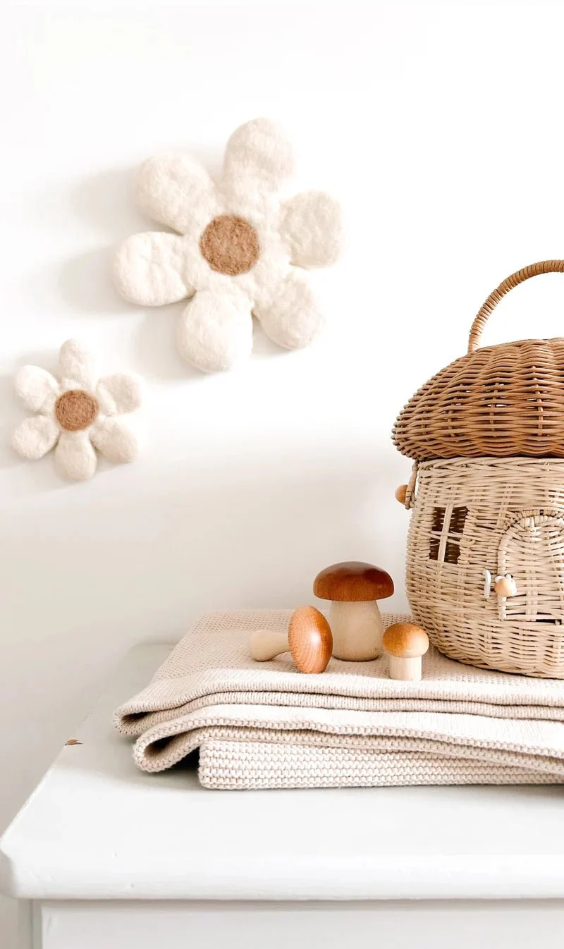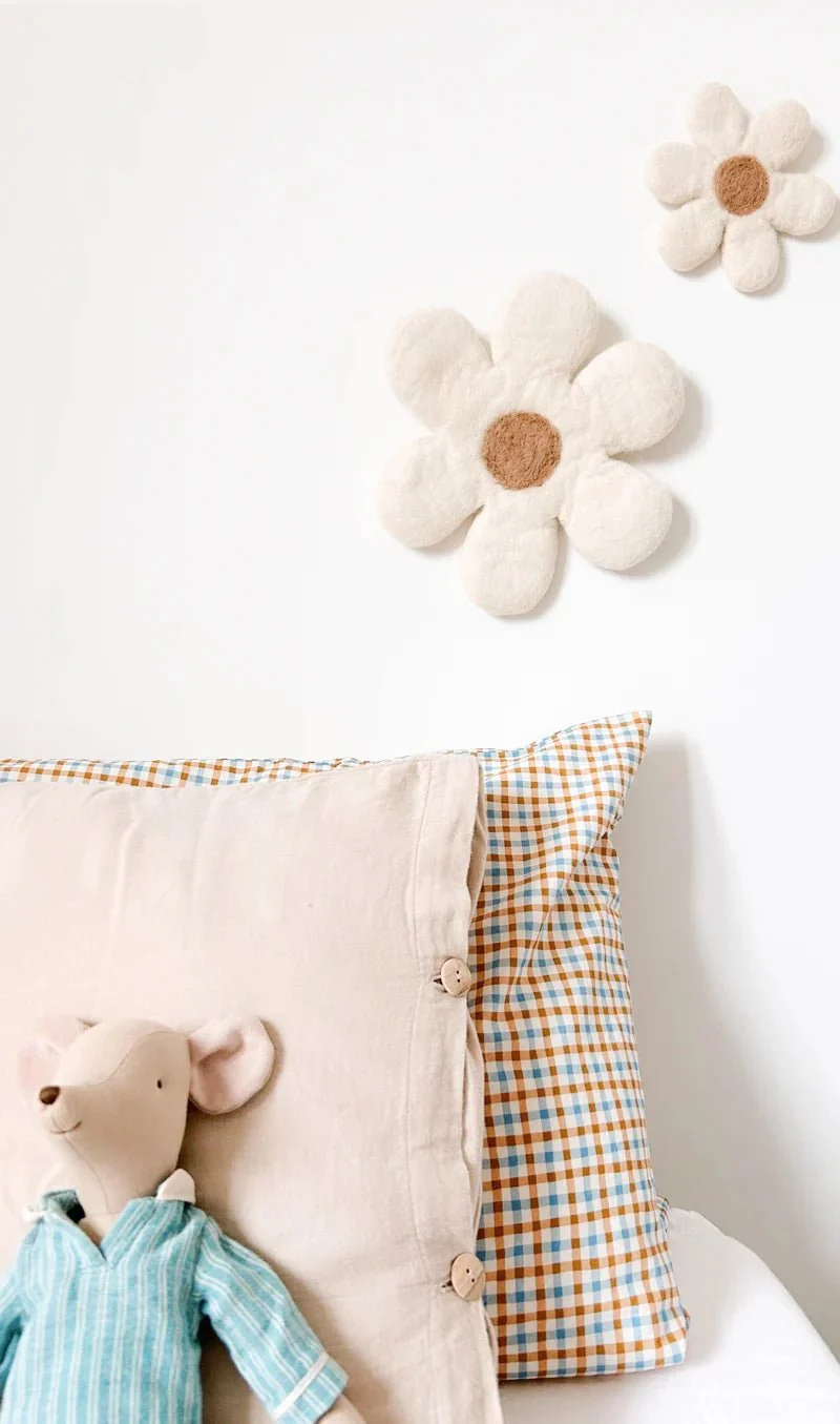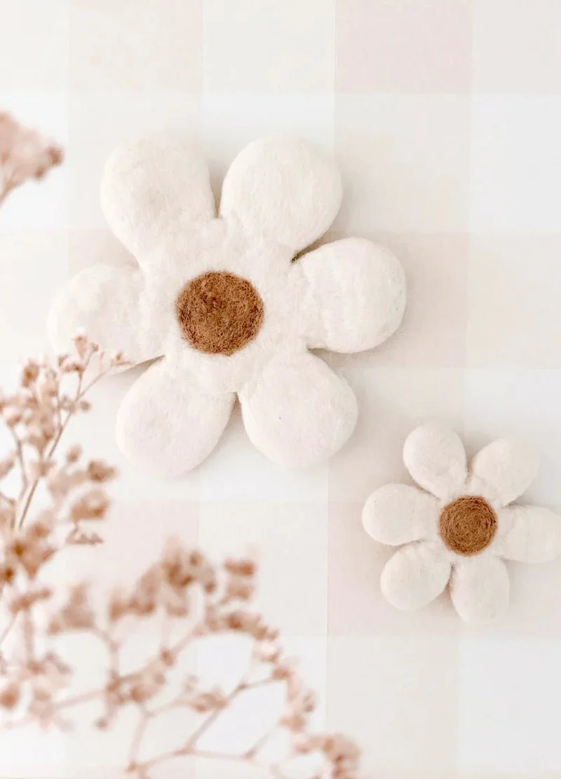 Apportez une touche douce et apaisante à la chambre de votre enfant avec ces magnifiques fleurs murales en laine feutrée conçu par Bee Boheme.