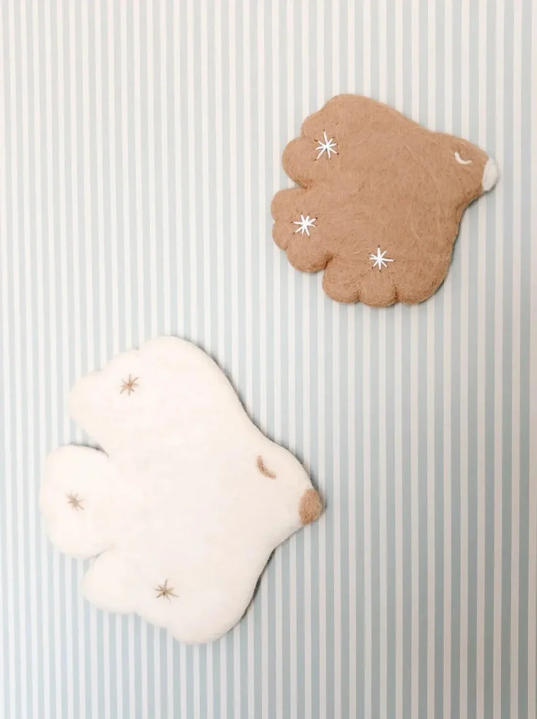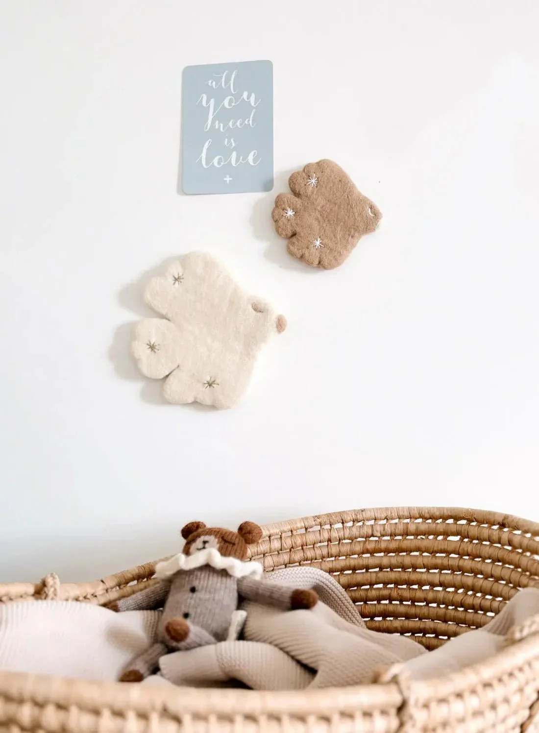 Apportez une touche douce et apaisante à la chambre de votre enfant avec ces magnifiques oiseaux muraux en laine feutrée conçu par Bee Boheme.