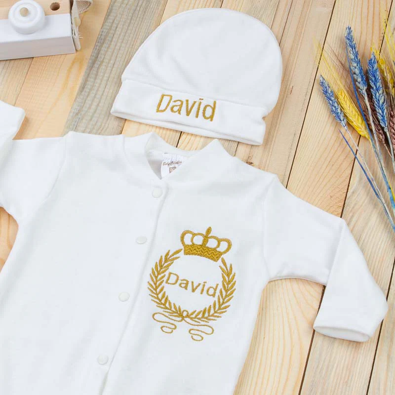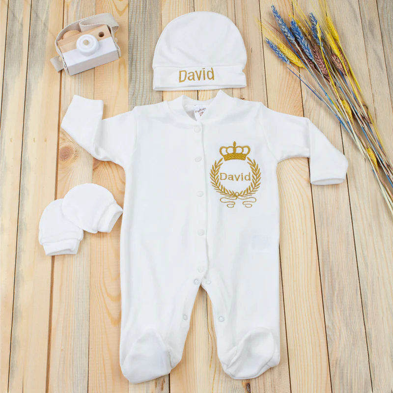 Ensemble Barboteuse personnalisé , Chapeau et Moufles, pour Bébé