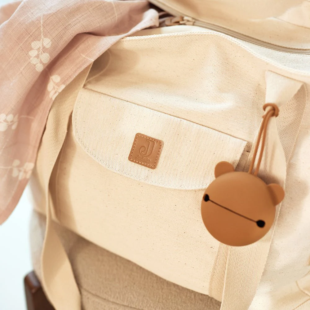 Il vous suffit de l’attacher à votre sac pour avoir la tétine à portée de main dès que votre enfant en a besoin. Son design assure un rangement hygiénique de la tétine, prête à être utilisée à tout moment. Personnalisez-le selon votre style en choisissant parmi les couleurs tendance caramel, vert olive et rose champêtre.