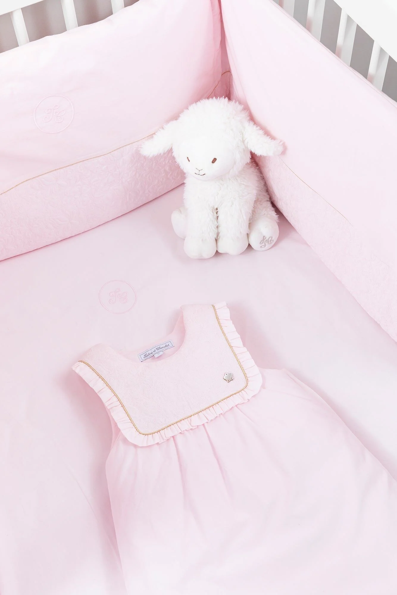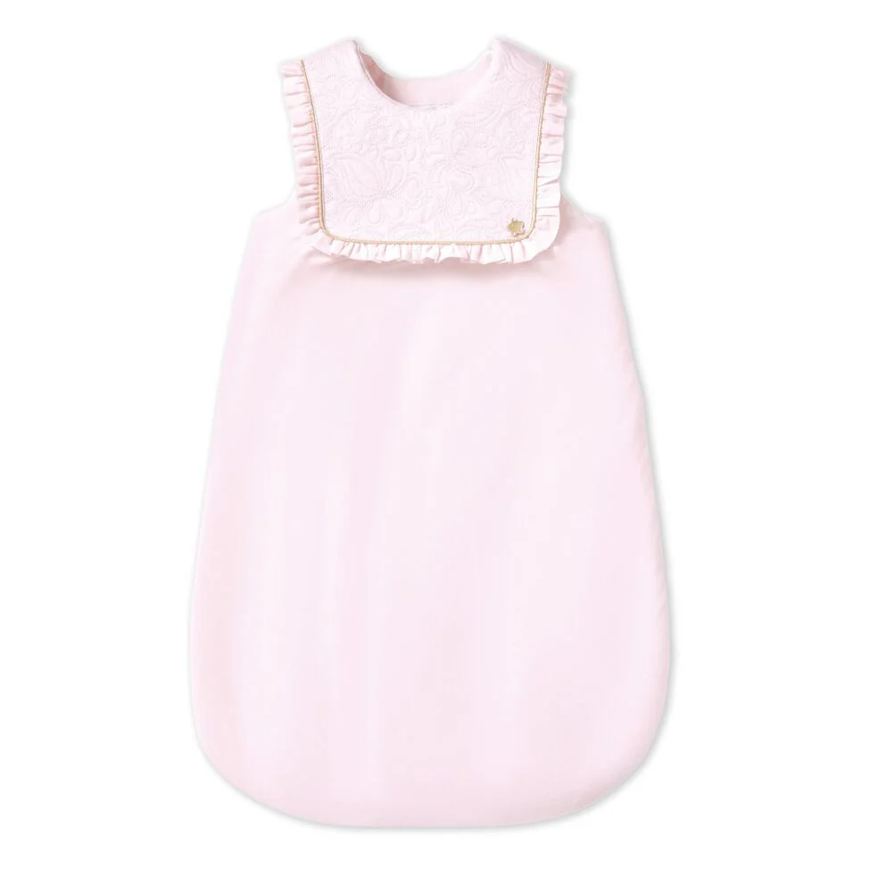 Gigoteuse Délicatesse rose en percale de coton émérisée et broderies.