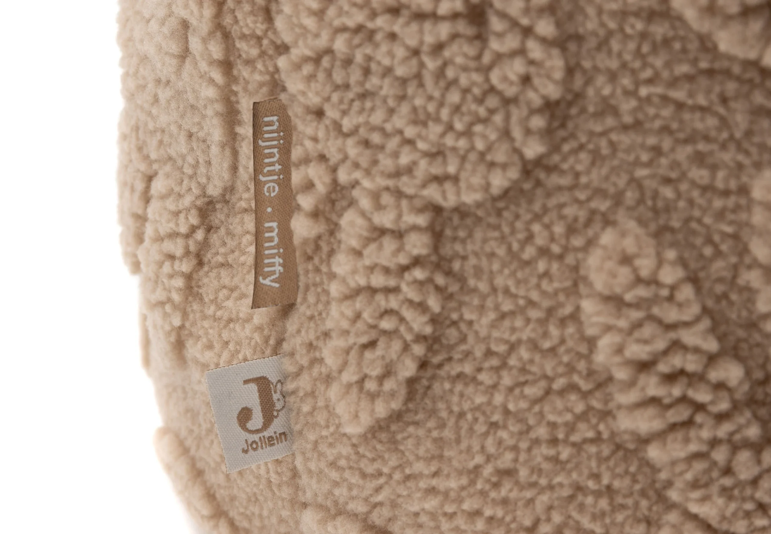 Fabriqué en tissu jacquard teddy avec des têtes de Miffy couleur biscuit, il offre un espace généreux pour ranger jouets, peluches ou petits objets.