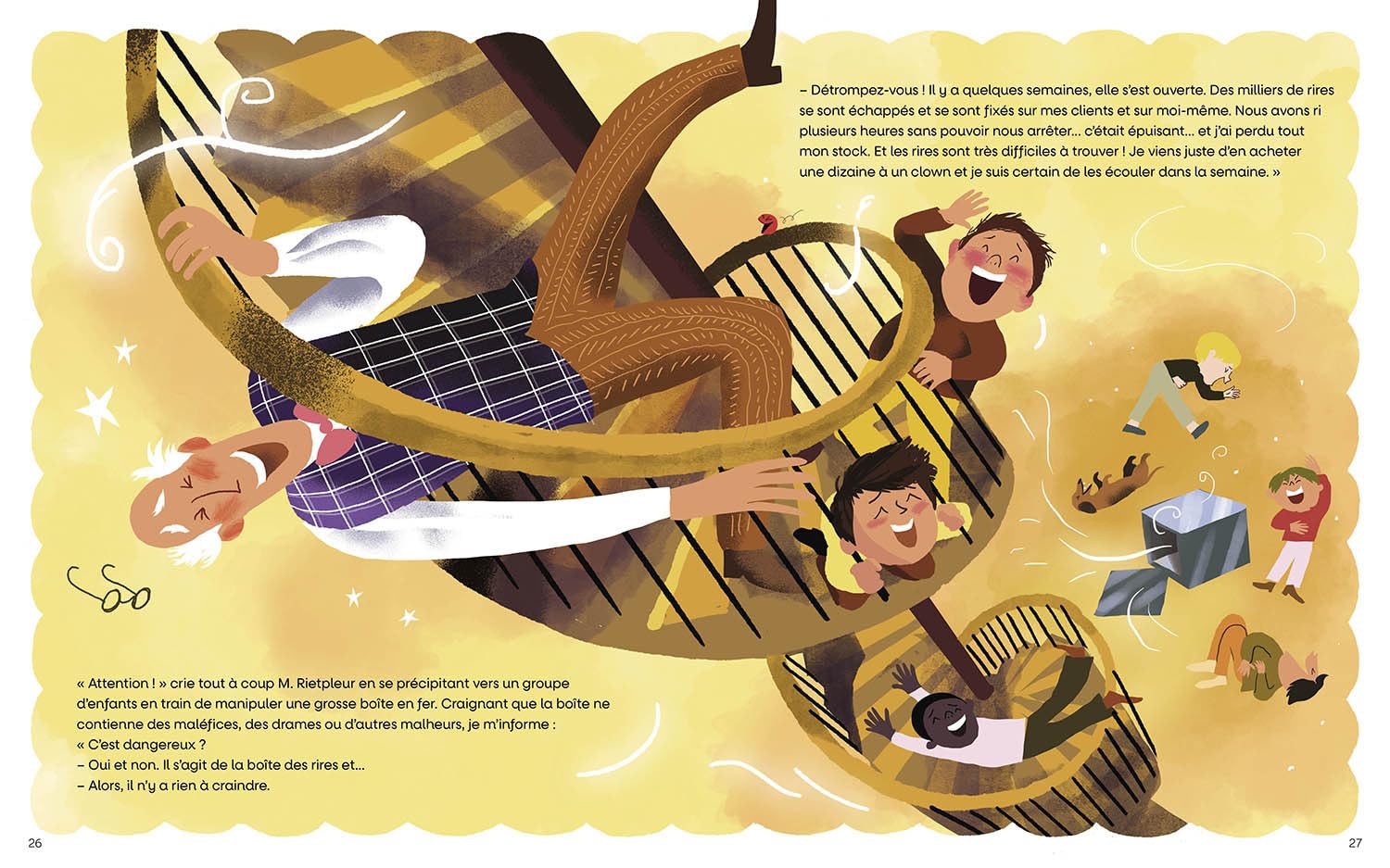 Dans la boutique des émotions, pas besoin d’argent ! Les enfants veulent se débarrasser d’une émotions trop forte ? Ils peuvent l’échanger dans la boutique de M. Rietpleur. Il y a l’étagère des bocaux à chagrins, le tourniquet des gros-mots, la malle aux cauchemars, la boite à rires… il n’y a qu’à se servir.