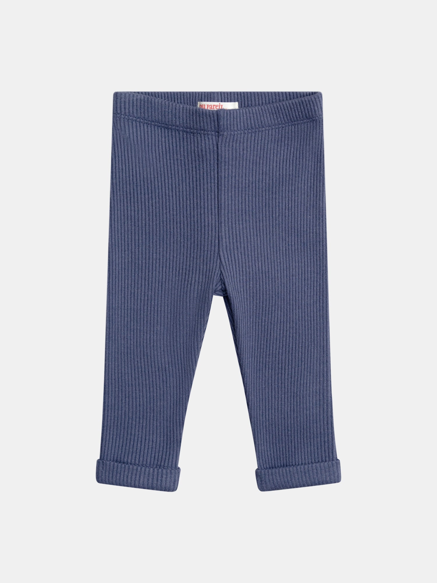 Conçu pour les bébés filles, ce legging bleu grisé en maille côtelée chaude est parfait pour la saison fraîche. Sa taille élastiquée assure un maintien confortable et facile à enfiler. Les revers en bas des jambes ajoutent une finition soignée et un style délicat.