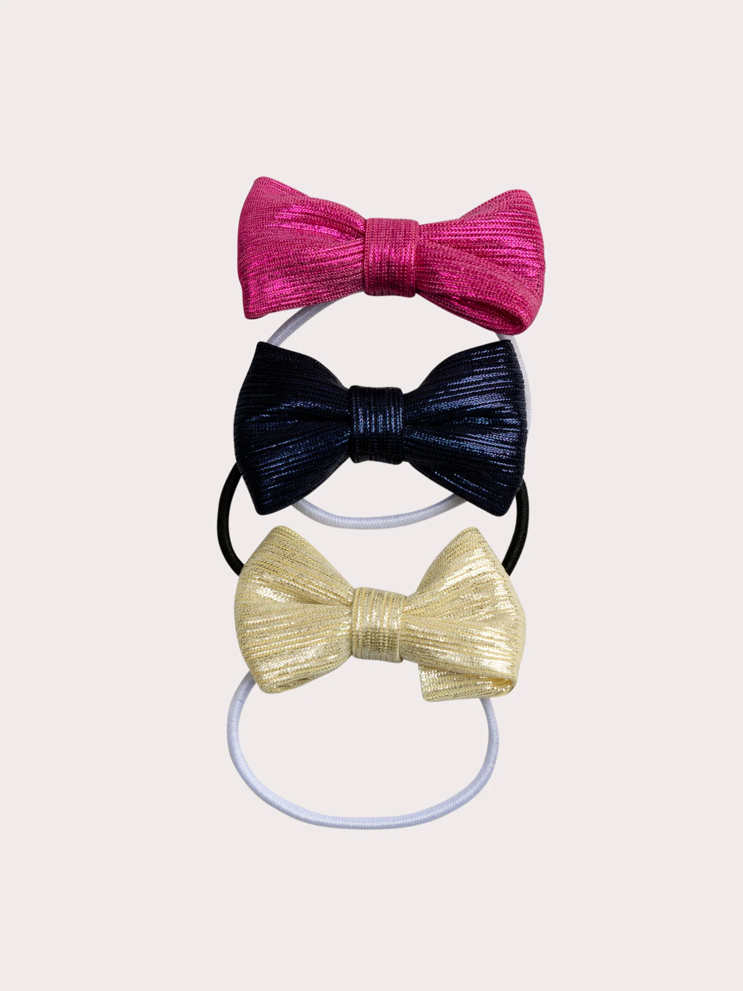 Ce lot de 3 élastiques à nœud brillant est idéal pour les petites filles qui aiment ajouter une touche d’éclat à leurs coiffures. Chaque élastique est orné d’un nœud scintillant. Ces accessoires apportent élégance et luminosité au quotidien.