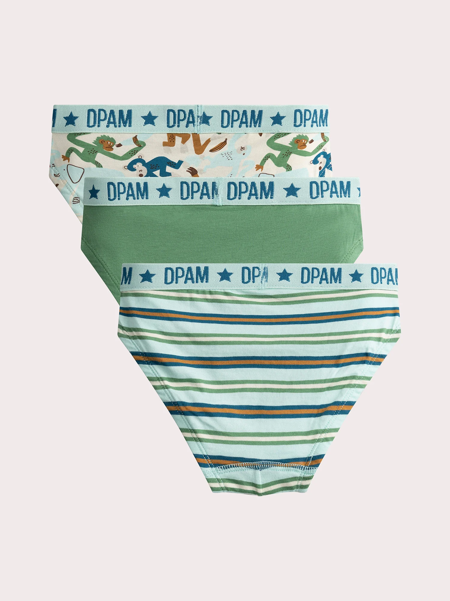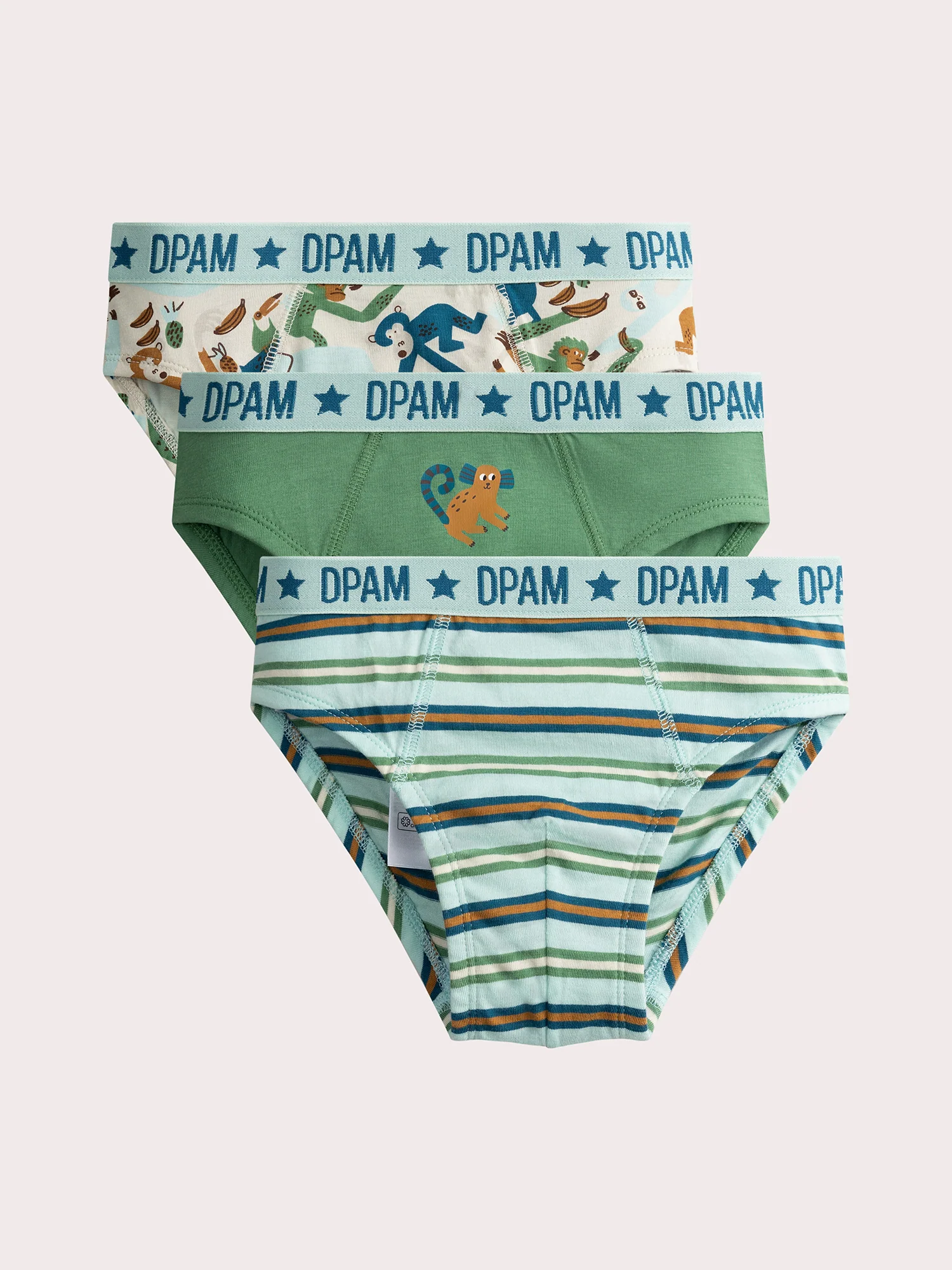En jersey Taille élastiquée avec logo 1 slip à rayures 1 slip à motif animal 1 slip à imprimé animalier Vous pouvez accéder à la fiche produit relative des qualités et caractéristiques environnementales en cliquant ICI.