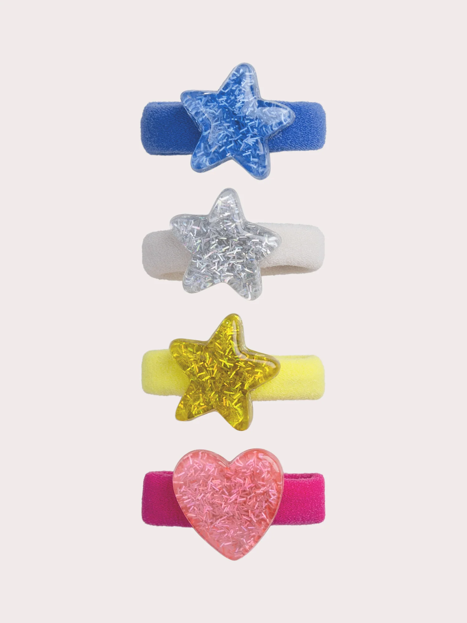 Lot de 4 petits élastiques cœurs et étoiles multicolores pour fille