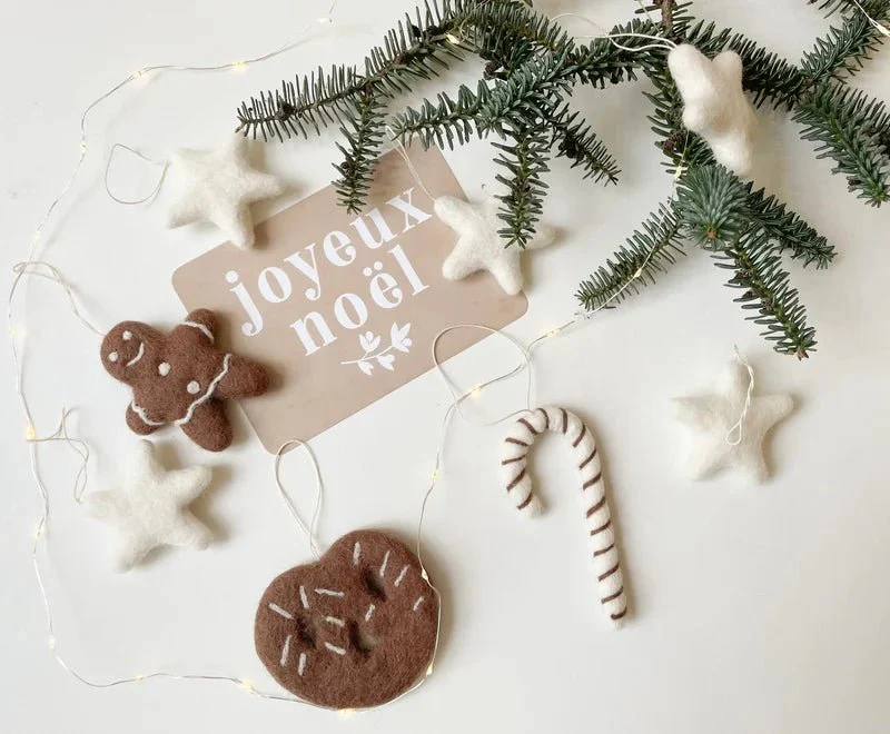 Que ce soit pour accrocher sur votre sapin, embellir une couronne de Noël, décorer votre table ou sublimer votre intérieur, nos ornements en laine feutrée seront parfaits.