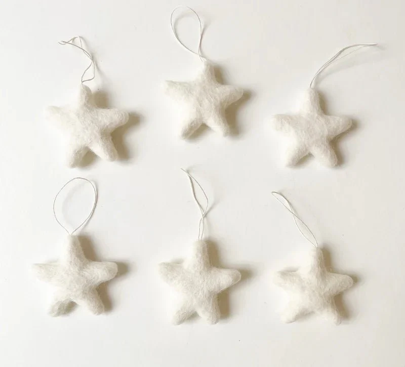 Cet Ensemble de 6 étoiles en laine feutrée a été confectionné à la main depuis le Népal.