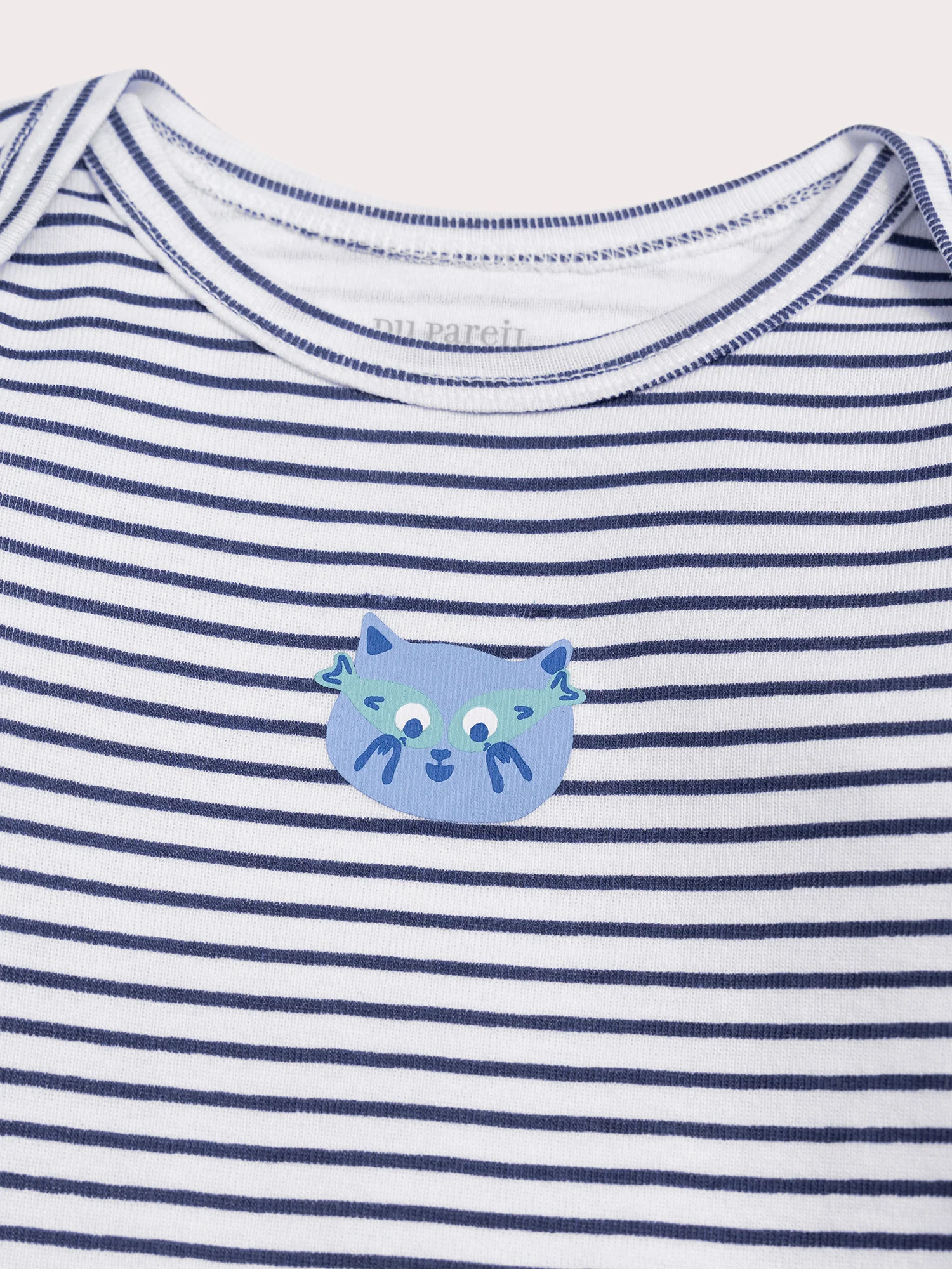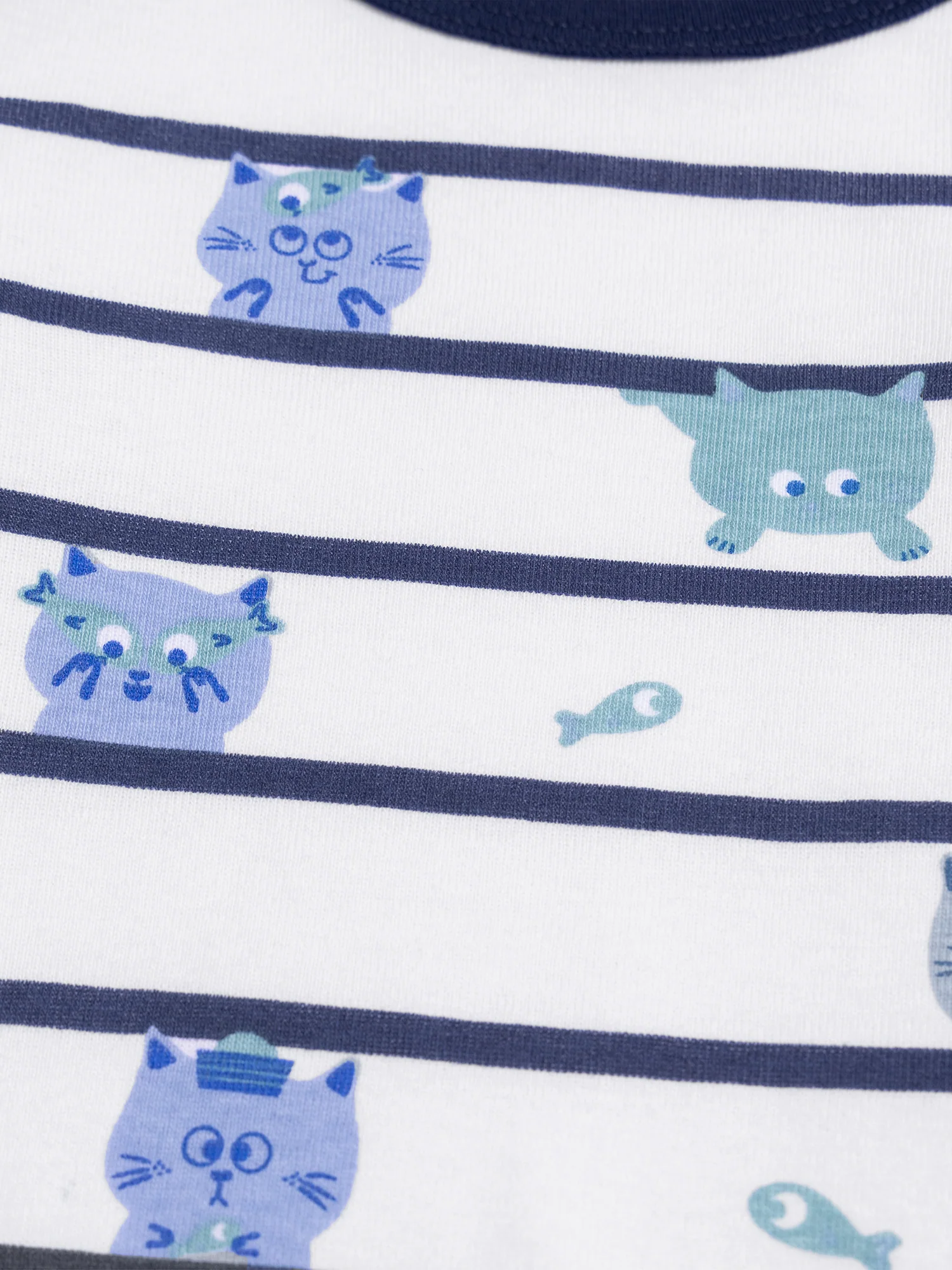 Cote 1X1 Imprimé à rayures Animations chat Contient du coton issu de l’agriculture biologique Vous pouvez accéder à la fiche produit relative des qualités et caractéristiques environnementales en cliquant ICI.