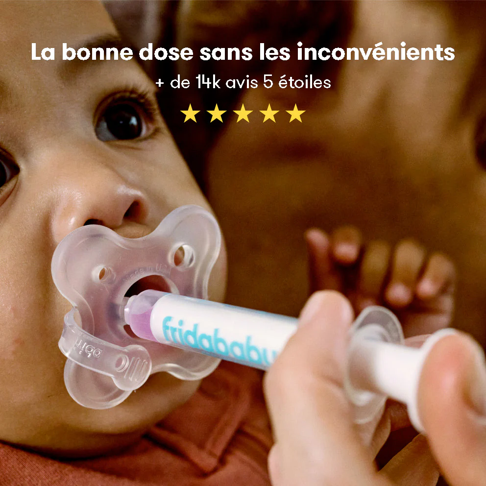 MediFrida est le seul distributeur de médicaments pour bébé de style tétine qui fait également office de véritable sucette, de sorte que le dosage n’interrompt pas le planning apaisant bien chargé de bébé.