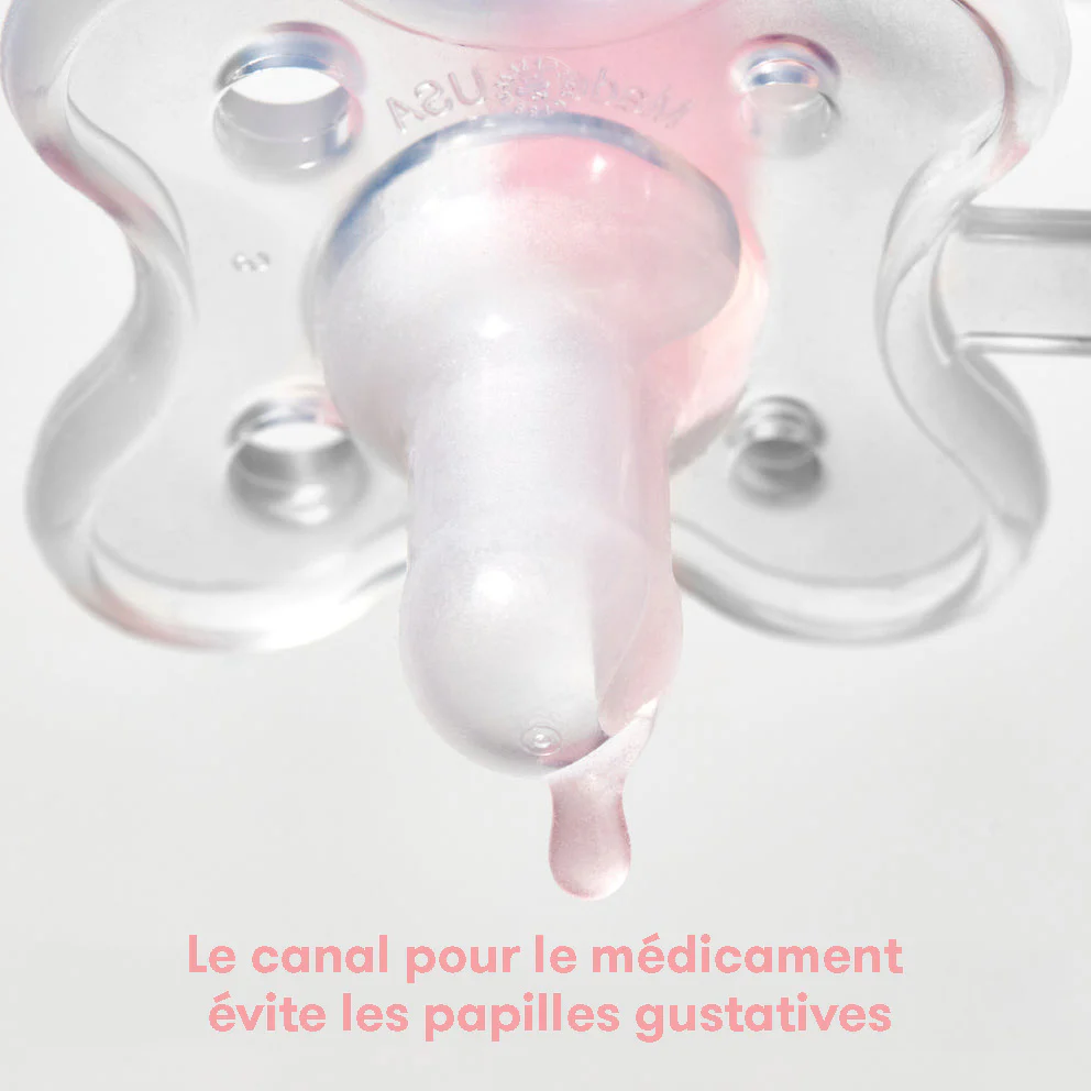 ADMINISTRATION SANS TRACAS : la sucette pour médicament dirige le liquide sur le côté de la joue du bébé, conformément aux recommandations des médecins, ce qui empêche efficacement les renvois et garantit une expérience sereine.