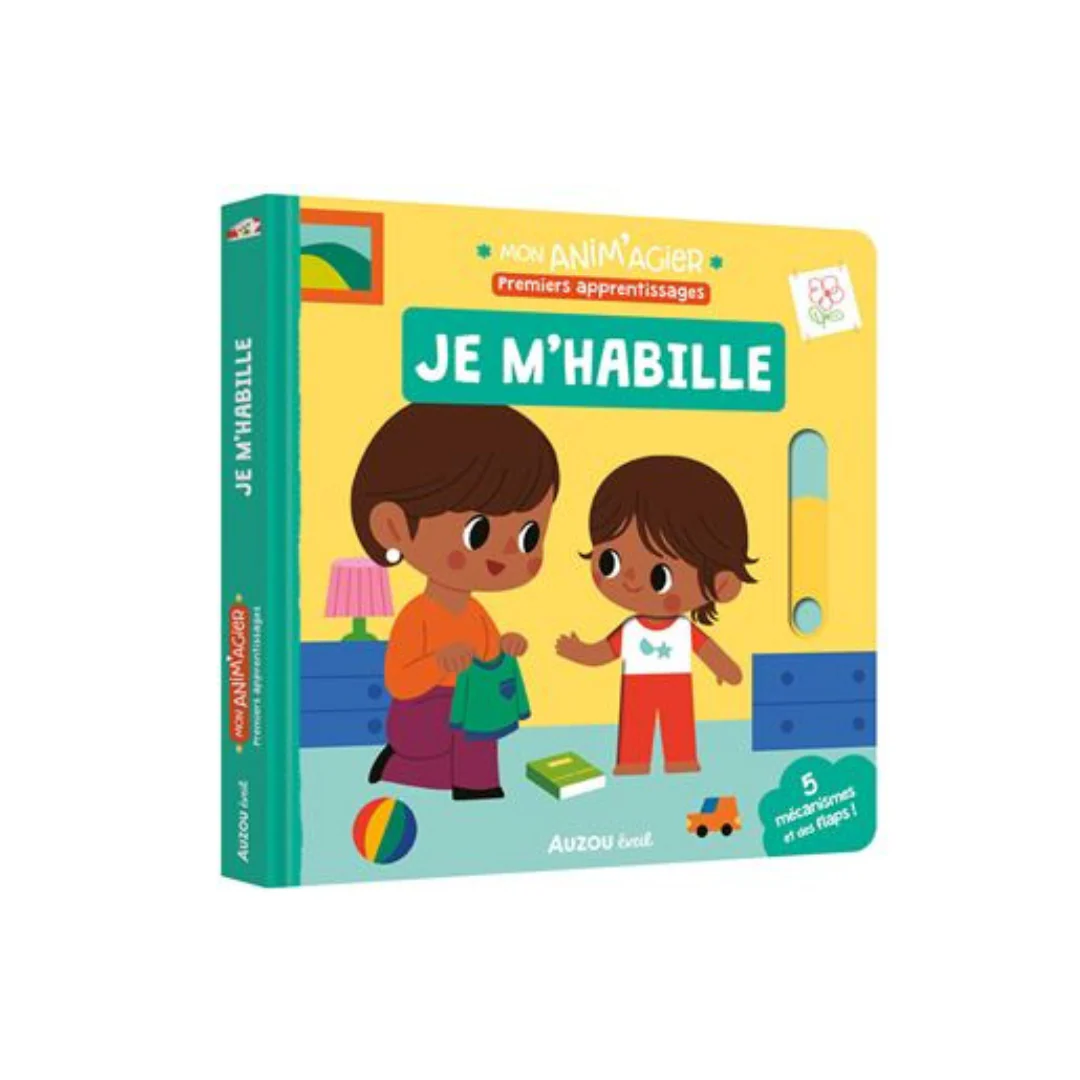 Un livre imagier animé pour apprendre tout en s’amusant ! A travers ce livre votre enfant apprend à s’habiller tout seul. On retrouve toujours 5 mécanismes solides, logiques et adaptés aux petites mains, faciles à manipuler, et une double page à la fin qui récapitule les apprentissages de façon ludique, grâce à un jeu avec des petites fenêtres à soulever afin de deviner ce qui se cache dessous.
