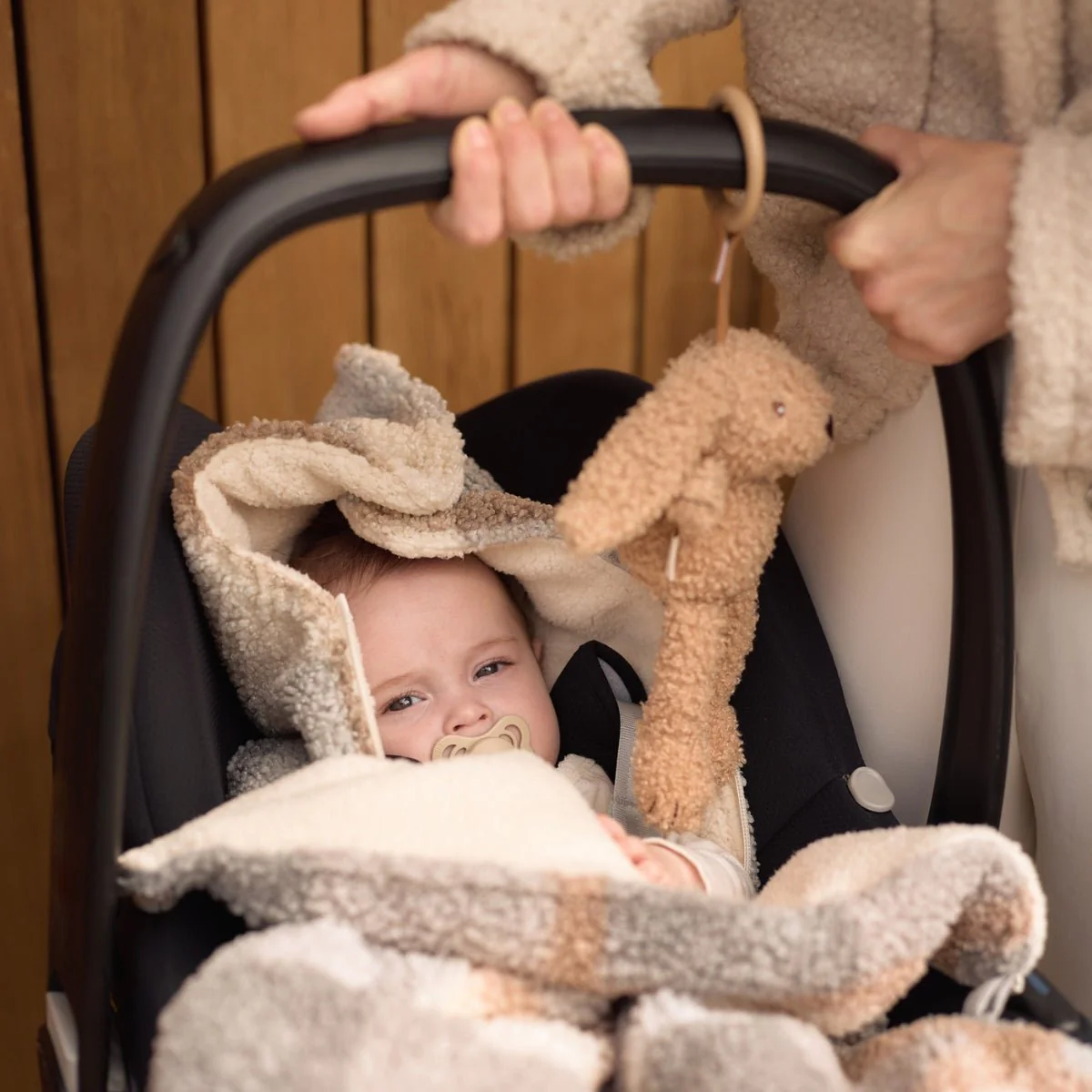 Il se compose d’un extérieur en polyester, d’une doublure en fibres de polyester et d’un intérieur en jersey de coton doux. Vous pourrez également l’utiliser avec votre poussette pour une agréable et confortable balade en extérieur.