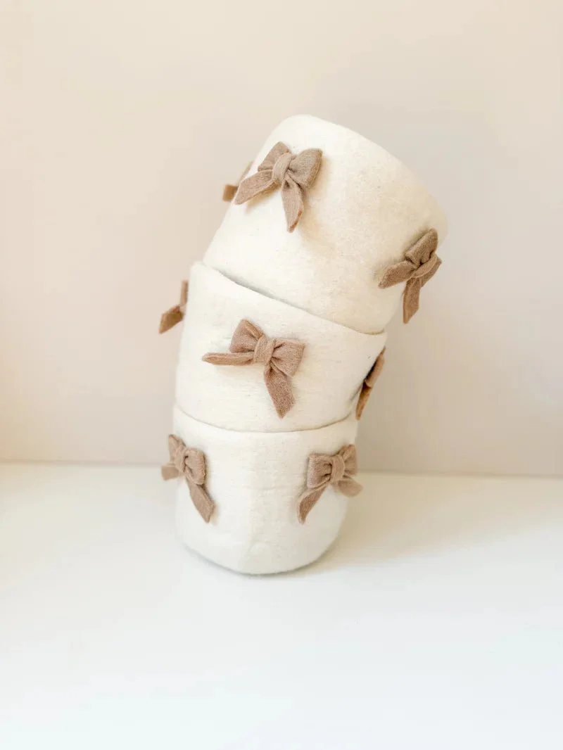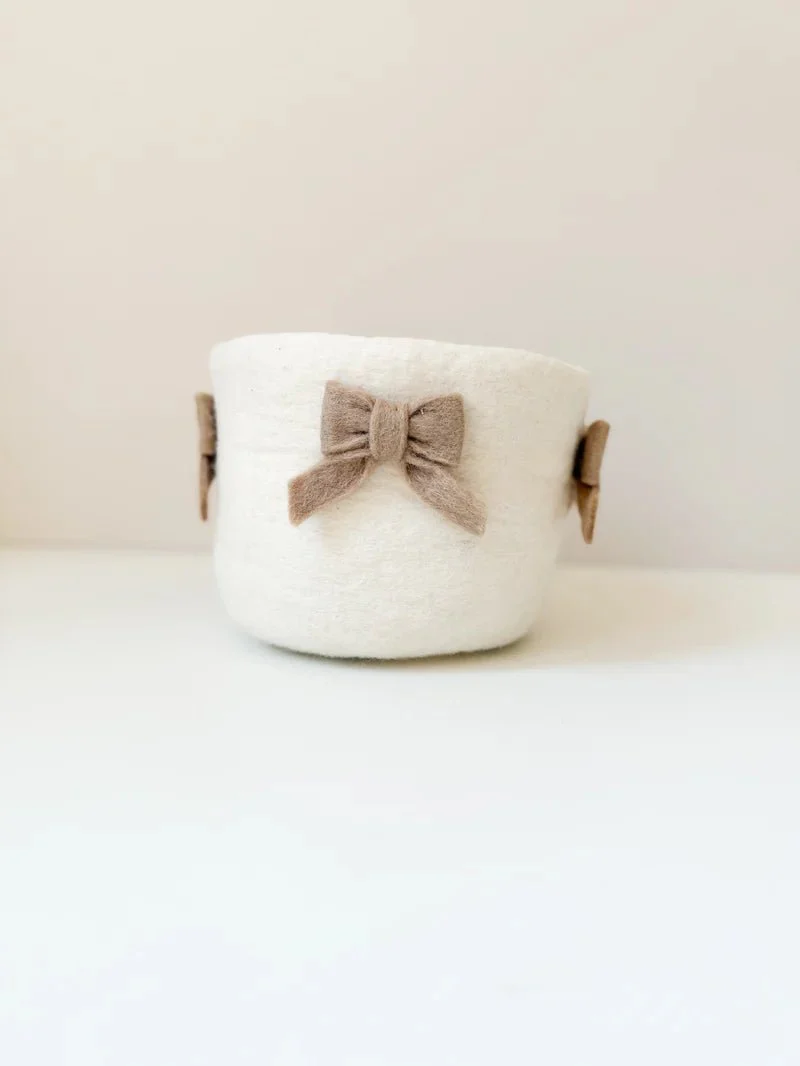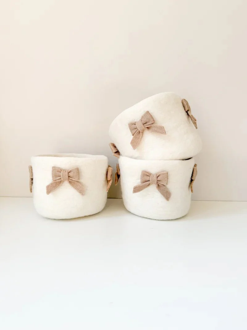 Découvrez notre panier de rangement motif nœuds en laine feutrée, un accessoire pratique et élégant . Il est idéal pour garder les affaires de bébé bien organisées et à portée de main lors du change.
