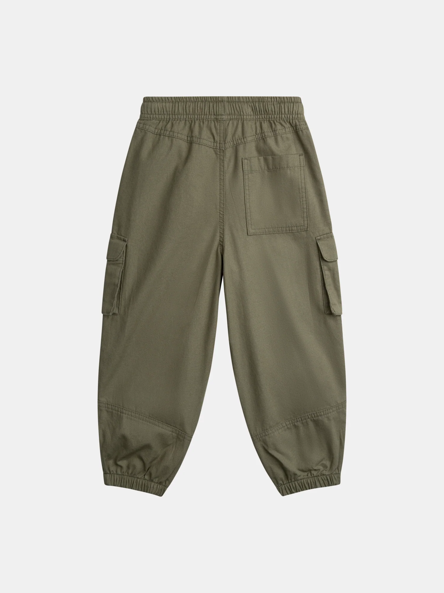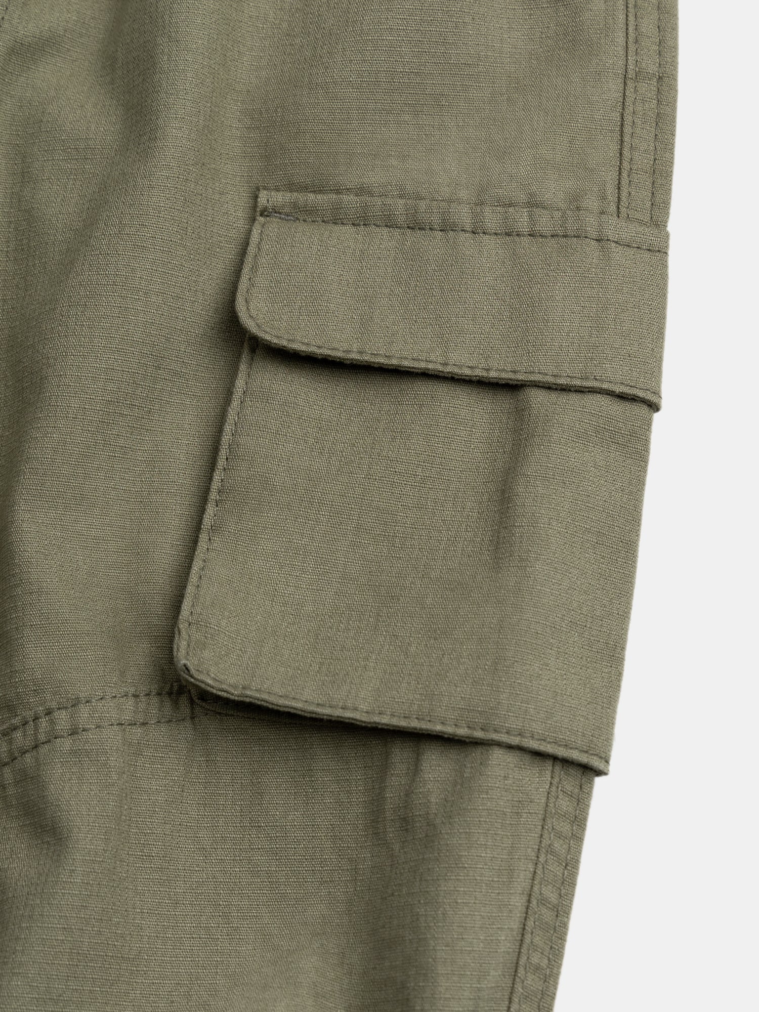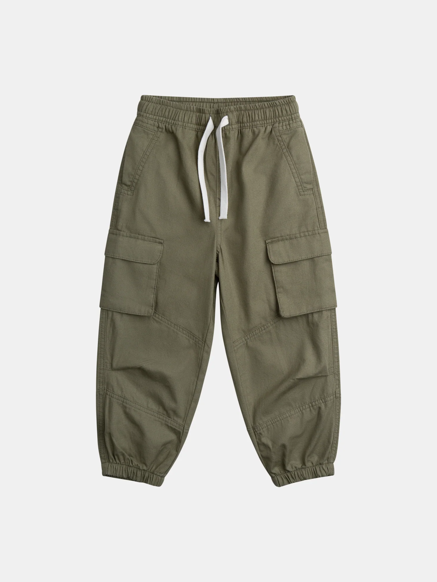 Conçu pour les garçons, ce pantalon cargo kaki en ripstop est parfait pour la mi-saison. Sa taille élastiquée avec cordon de serrage garantit confort et maintien au quotidien. Les deux poches cargo ajoutent une touche pratique tout en renforçant son style décontracté.