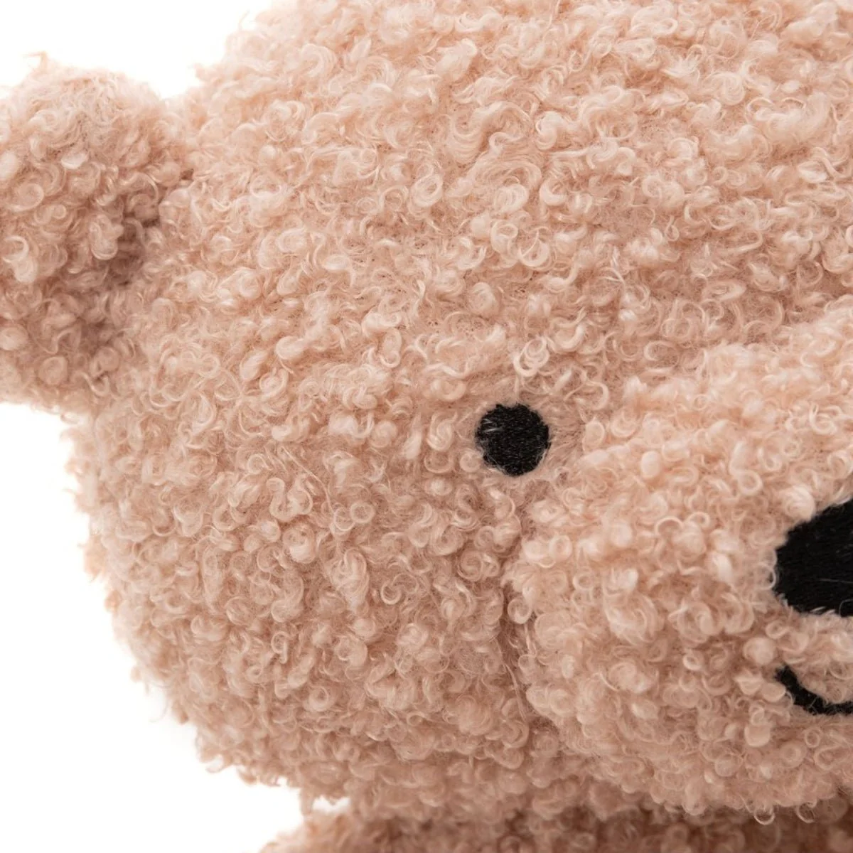 En position assise, cet ours veillera toujours sur votre tout petit. Qu’il soit dans son lit ou sur une étagère, il trouvera toujours une place appropriée pour le rassurer.
