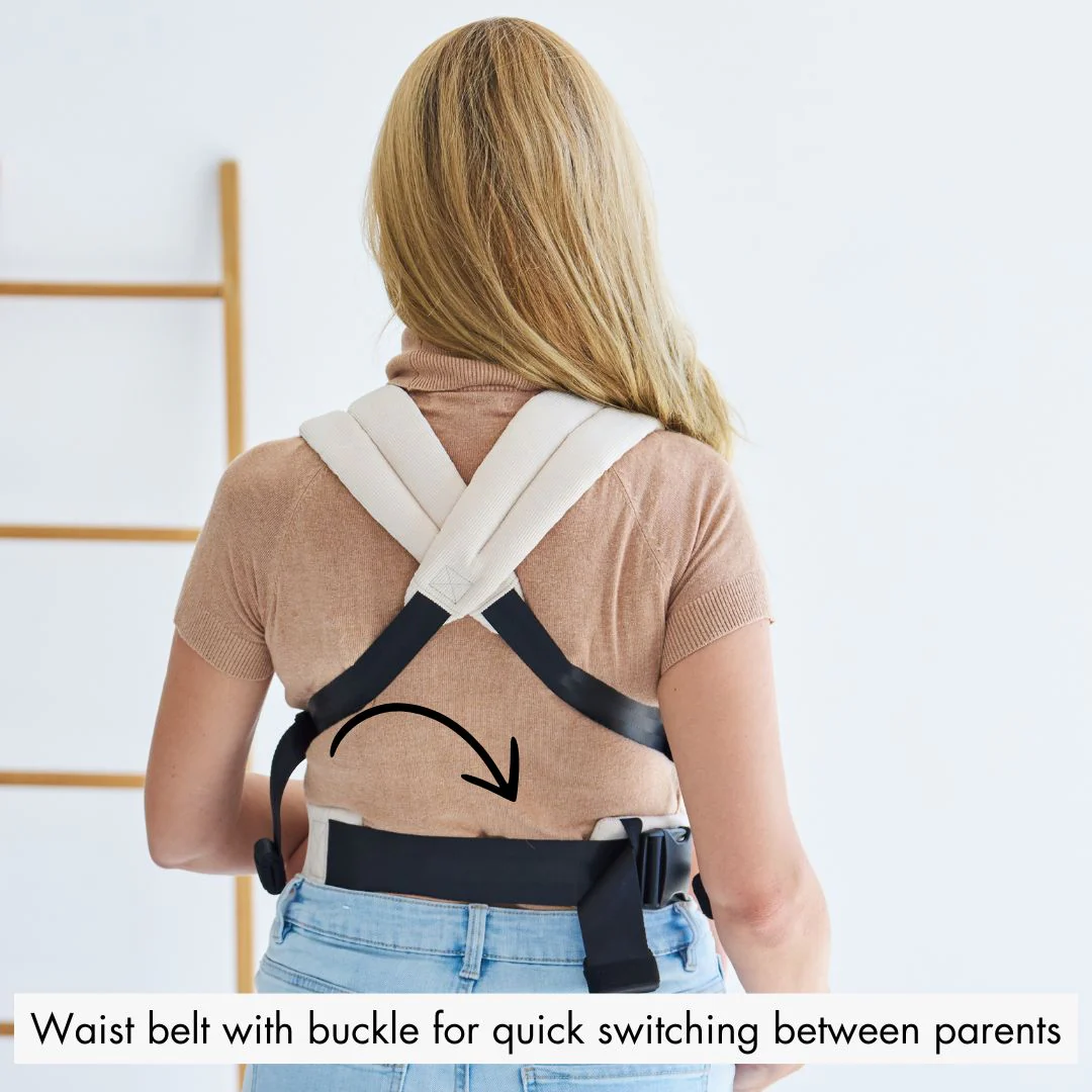 ✓ Waist belt with buckle for quick switching between parents