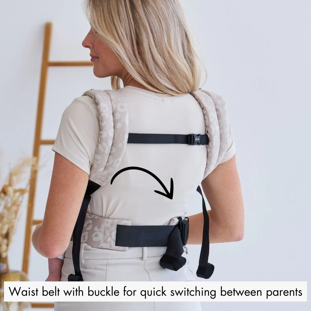 ✓ Waist belt with buckle for quick switching between parents