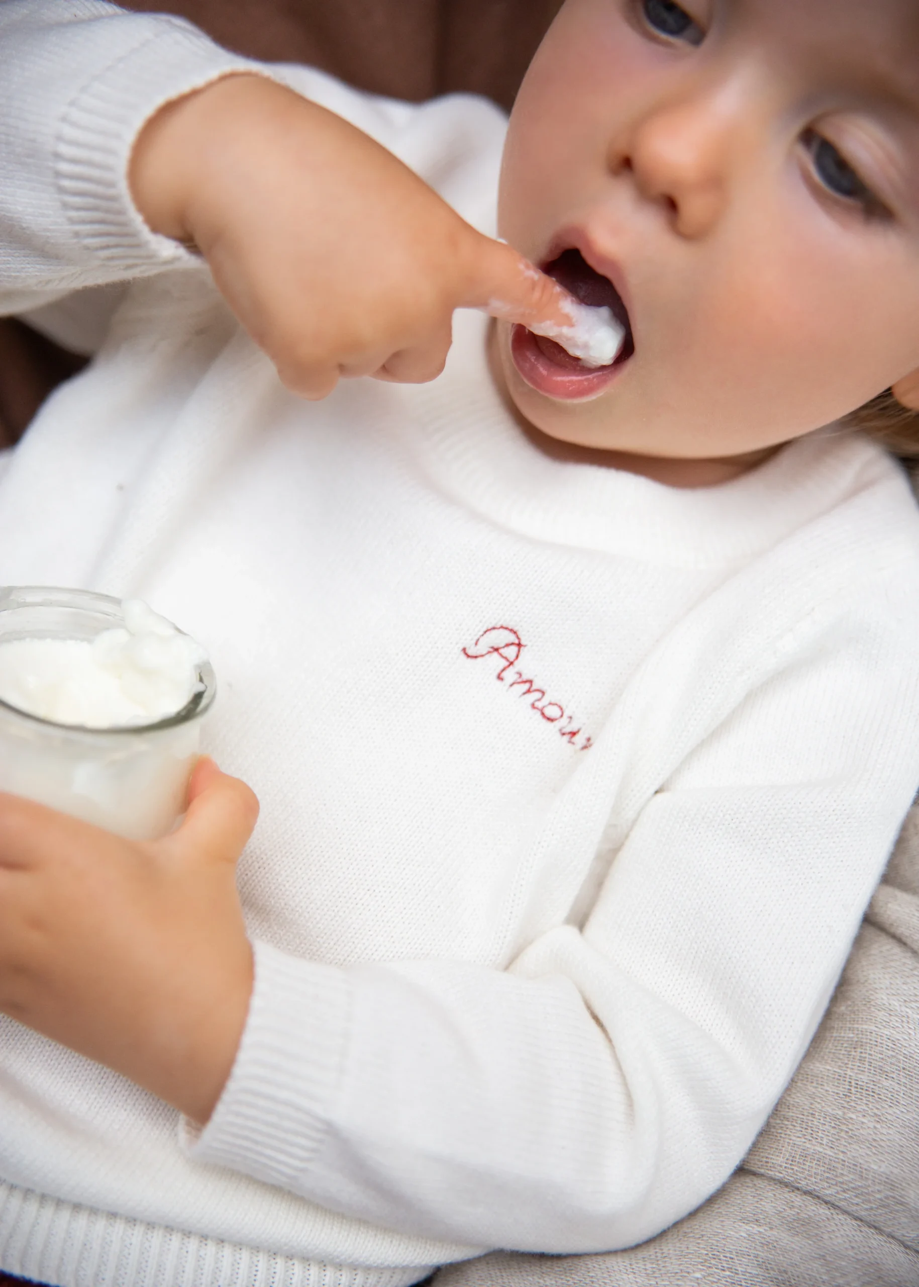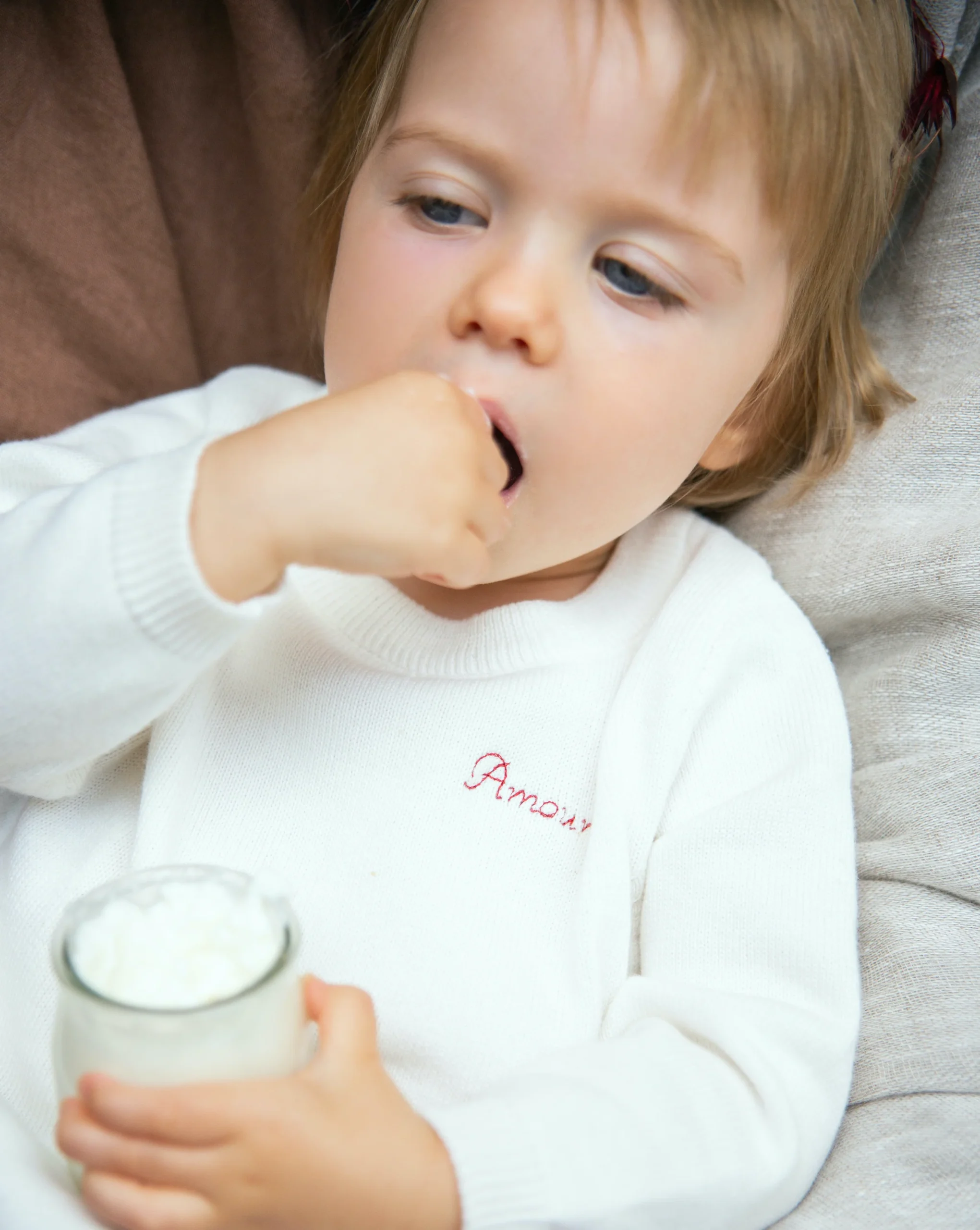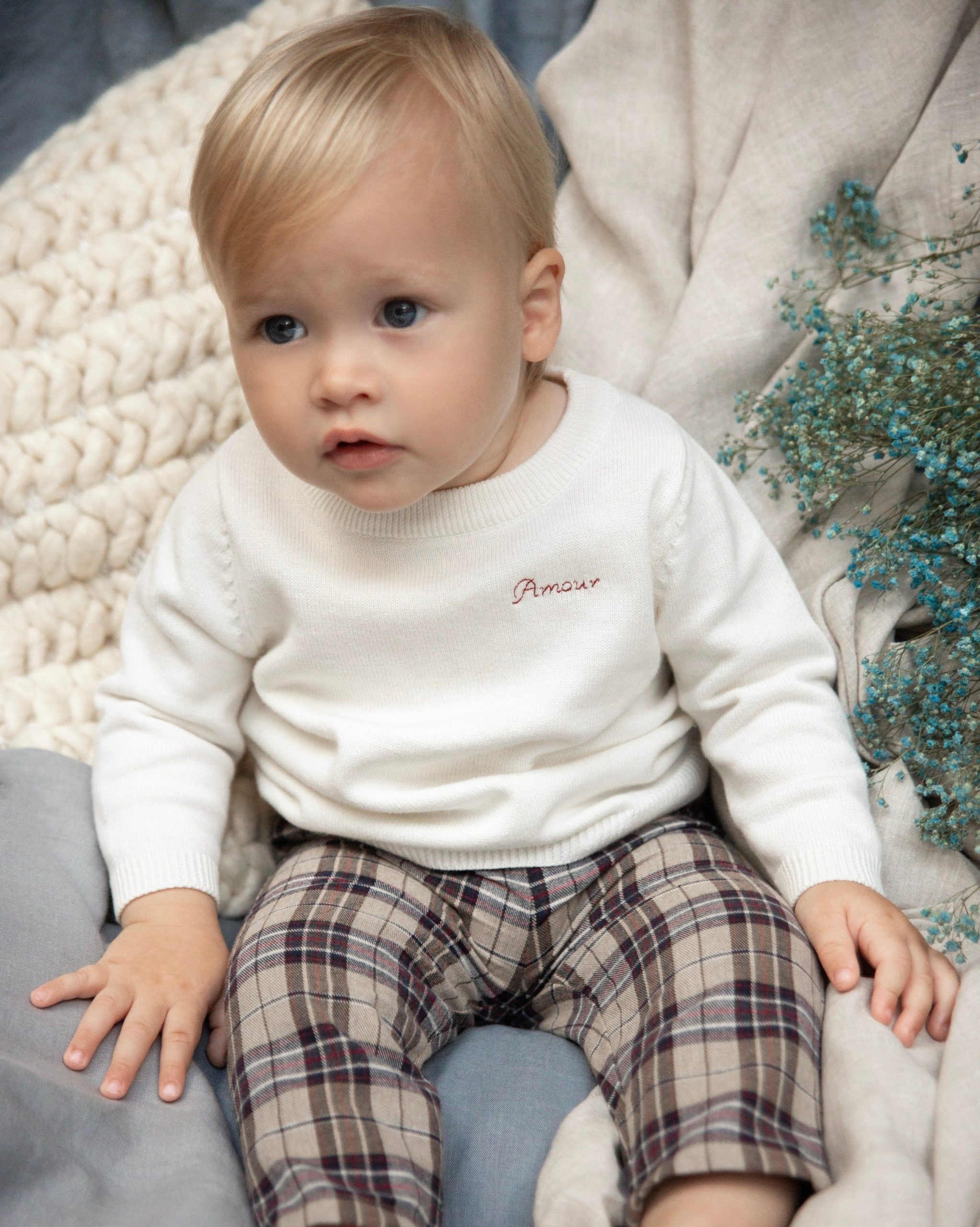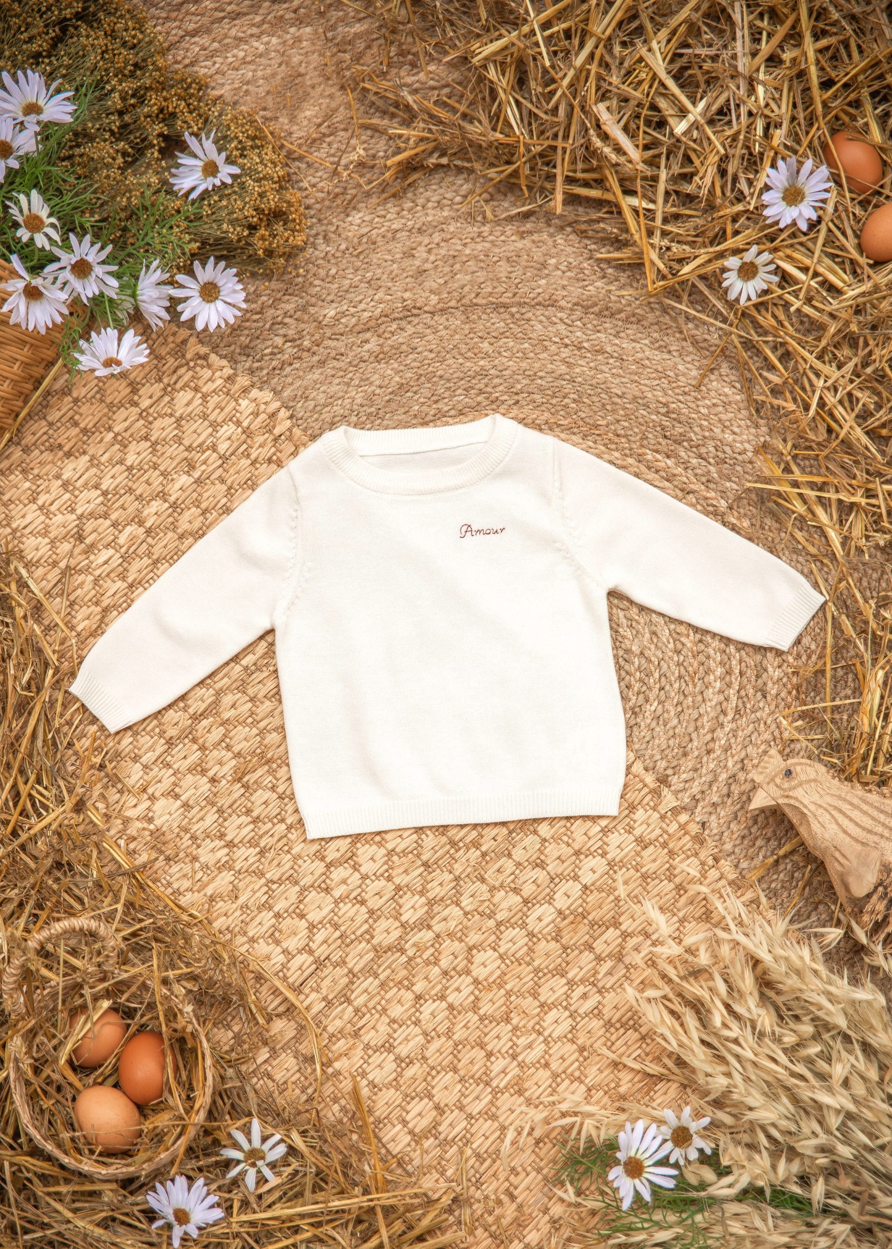 Pull en coton col rond.Merci de noter qu’à partir du 1er Mars, nos vêtements enfant ne pourront plus être brodés ou personnalisés.