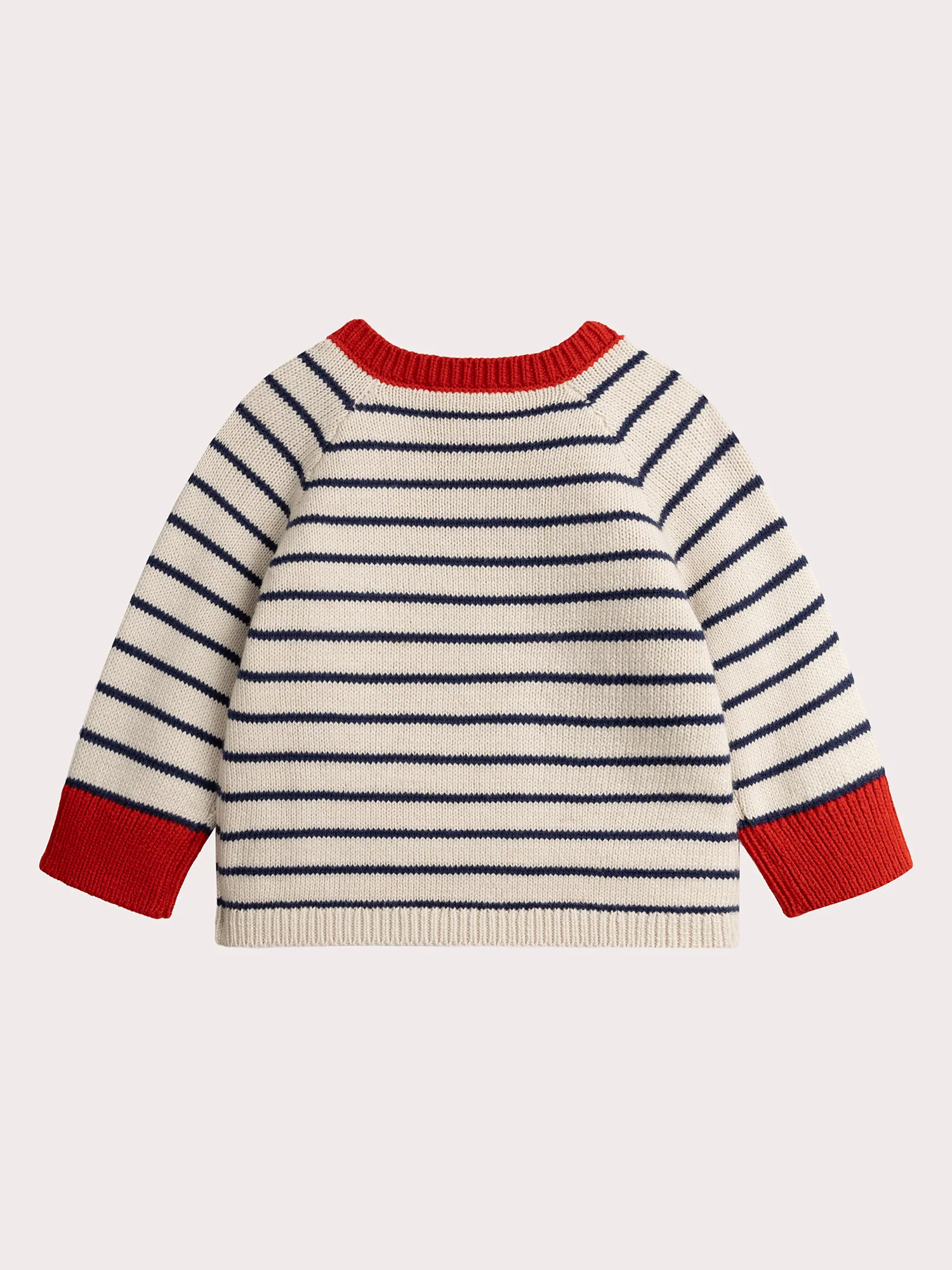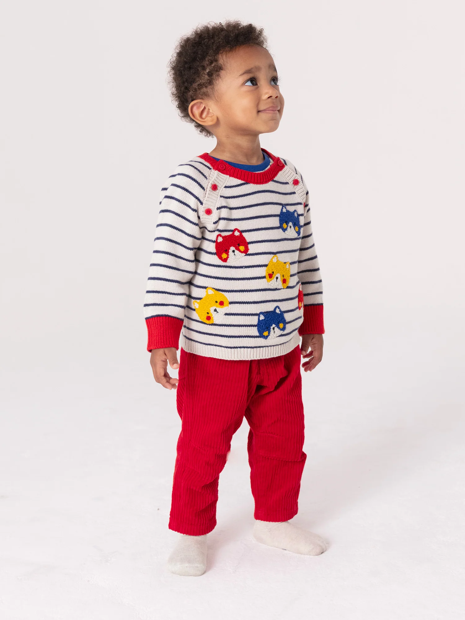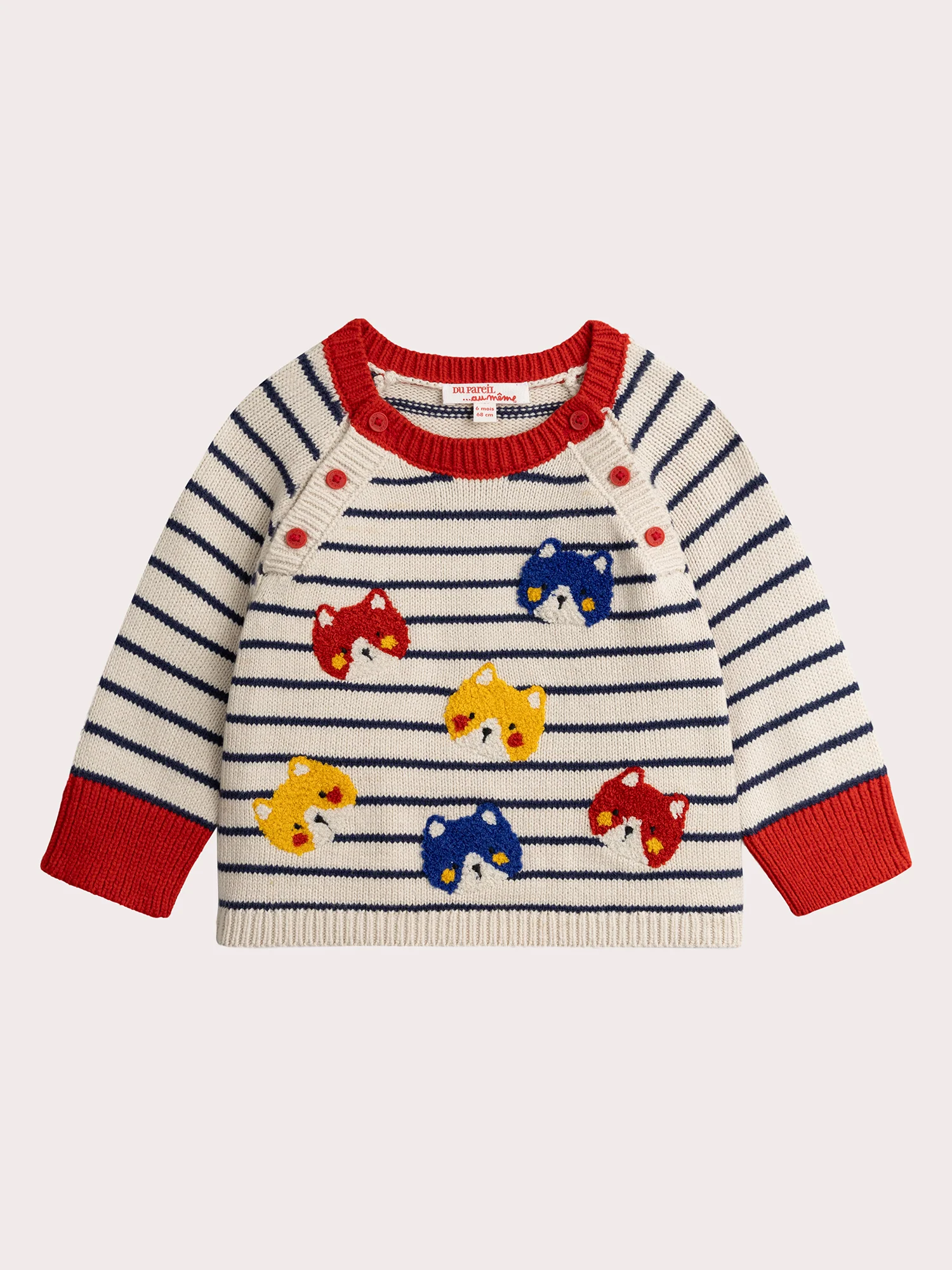 Ce pull rayé à manches longues est parfait pour votre petit garçon. Fabriqué en tricot de jersey doux, il offre chaleur et confort. L’ouverture à boutons sur le devant facilite l’habillage. De plus, l’animation de tête de renard brodée ajoute une touche ludique à son look.