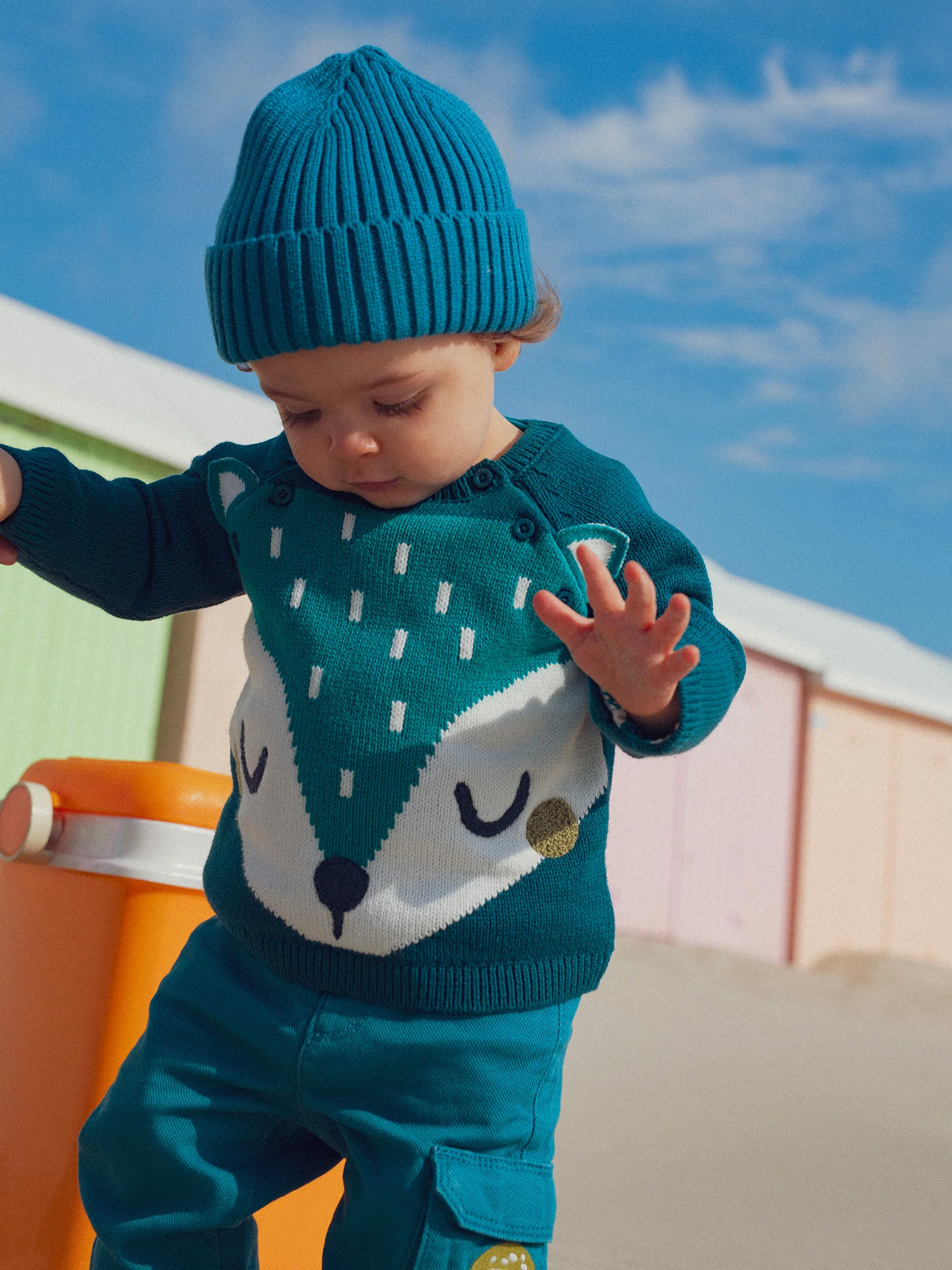 Ce pull renard en tricot jersey est conçu pour les bébés garçons, idéal pour les saisons fraîches. Sa matière douce et légère assure confort et facilité de mouvement. L’animation renard sur le devant et l’empiècement fantaisie à l’emmanchure apportent une touche originale et charmante.