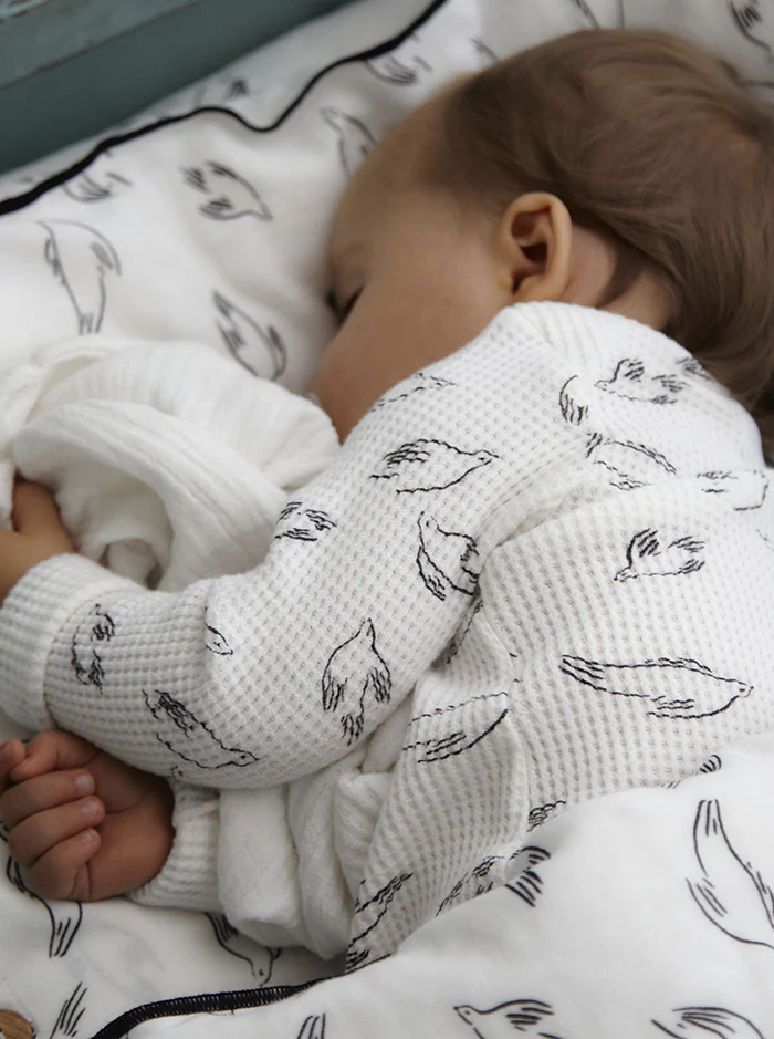 Pyjama sans pieds en nid d’abeille très souple, ouverture col américain Lavage en machine jusqu’à 40° en programme coton et séchage doux en tambour