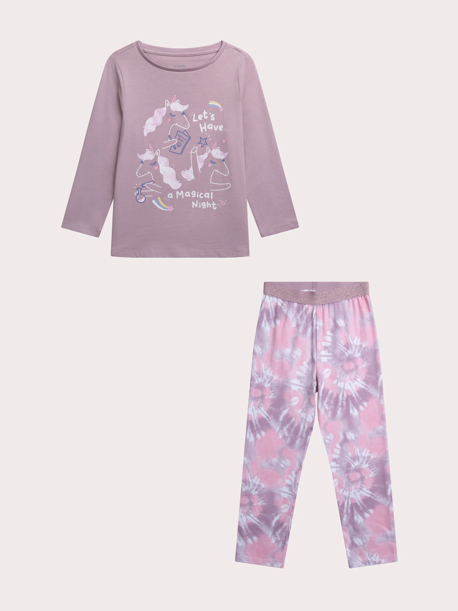 Jersey de coton Animation licorne phosphorescent Pantalon tye and die Vous pouvez accéder à la fiche produit relative des qualités et caractéristiques environnementales en cliquant ICI.
