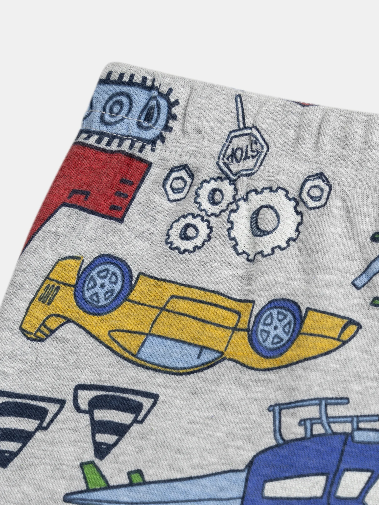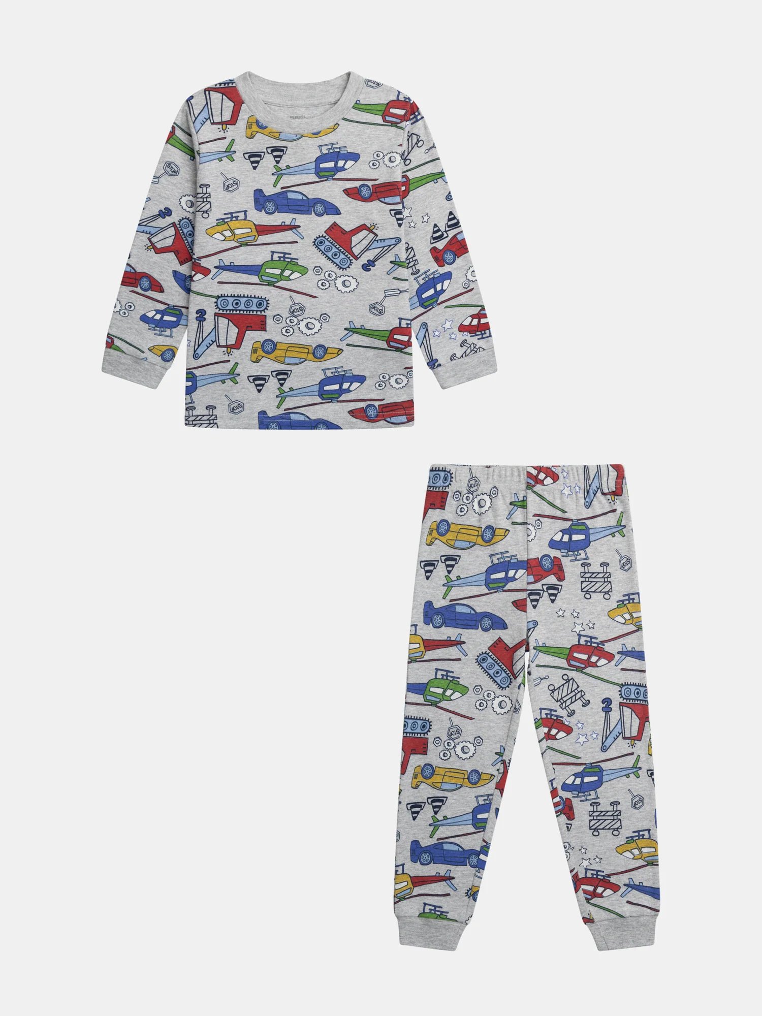 Offrez à votre enfant des nuits douces et pleines d’aventures avec cet ensemble de pyjama. Confectionné en côte avec des finitions en bord-côtes, il est naturellement doux et respirant pour un confort optimal pendant les chaudes nuits d’été. Le haut et le bas affichent un imprimé phosphorescent all-over d’engins de chantier, voitures et hélicoptères aux couleurs vives sur fond Gris Chiné, parfait pour les passionnés de véhicules. Le haut à manches longues présente un col rond et des poignets en bord-côtes, tandis que le bas, avec sa taille élastiquée souple et ses chevilles en bord-côtes, assure un maintien confortable toute la nuit.