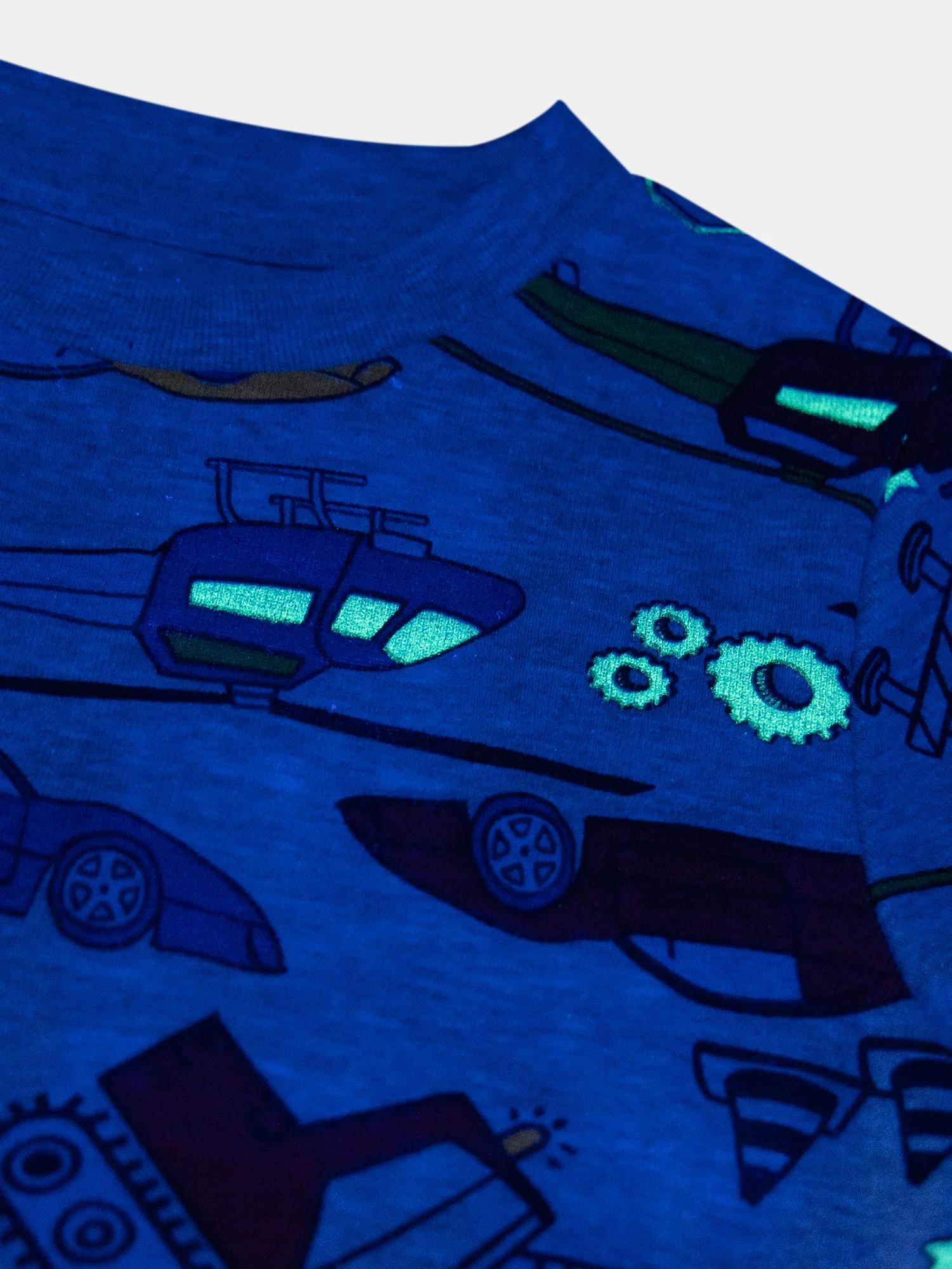 - Imprimé phosphorescent all-over voitures : motif ludique et plein d’action.