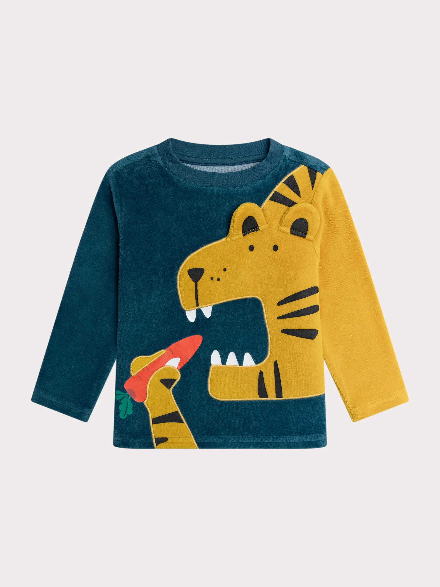 Velour Animation tigre milieu haut devant Vous pouvez accéder à la fiche produit relative des qualités et caractéristiques environnementales en cliquant ICI.